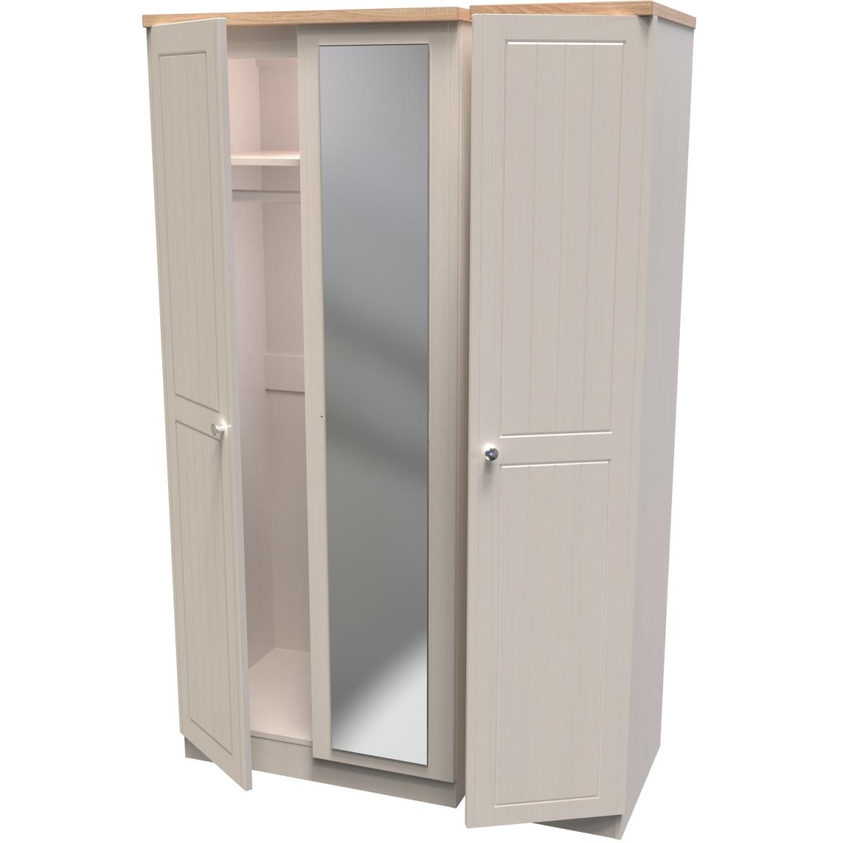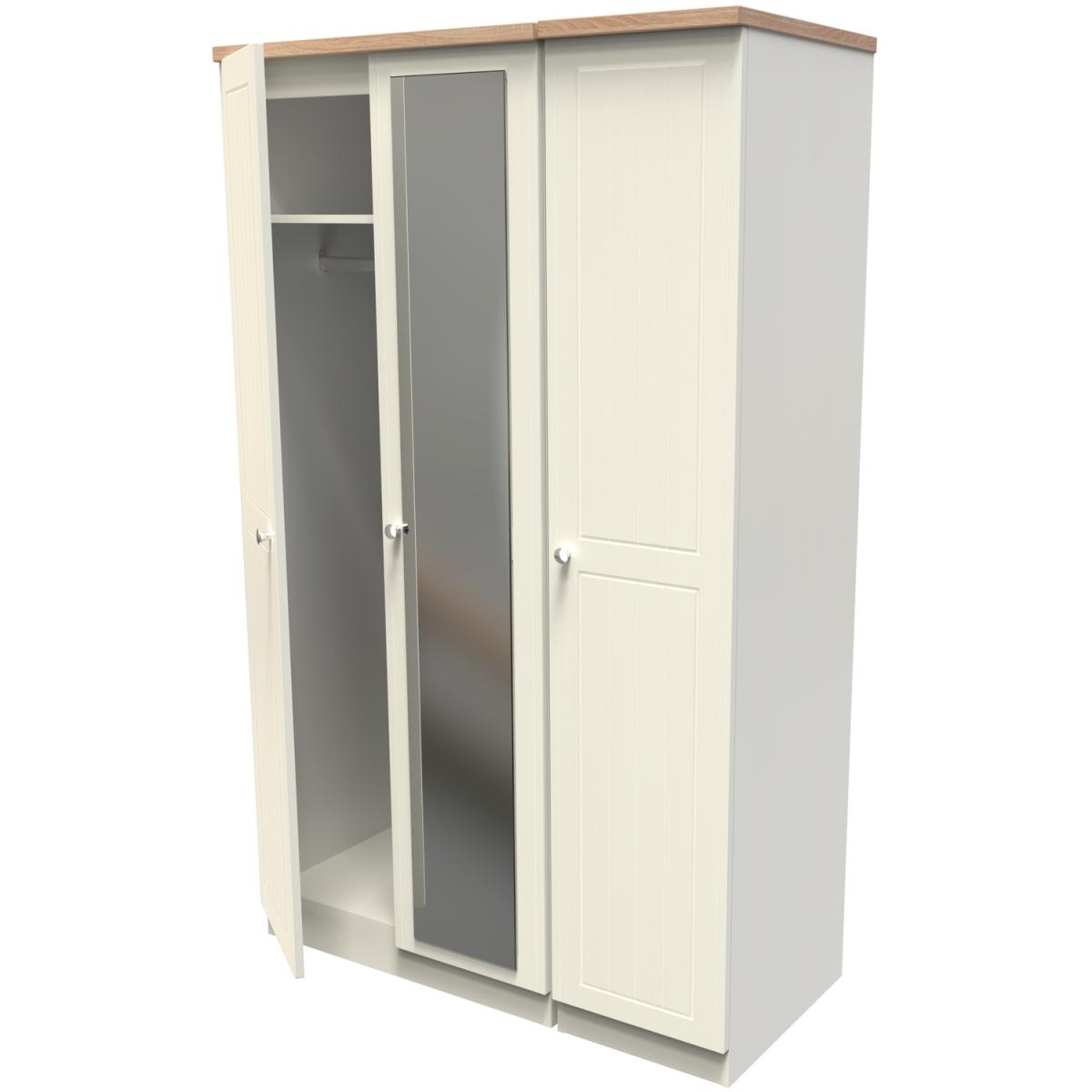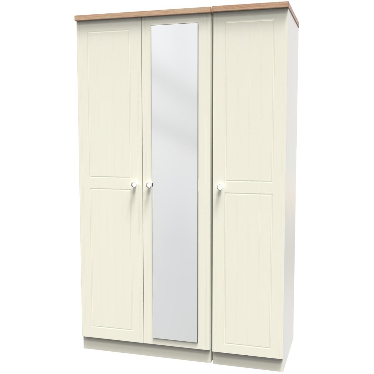 This full height triple 3 door wardrobe is perfect for any bedroom when a normal wardrobe is just not large enough. Also features a full height single mirrored door. The classic, elegant Vienna range is available in a variety of painted wood finishes with natural wood effect tops and stylish chrome handles on all doors and drawers. This range boasts a classic and traditional design which will compliment a variety of traditional home dors.. All our furniture is made in the United Kingdom, to the highest quality. It is delivered direct to your location of choice by one of our two man delivery teams, and come full assembled (although legs may be removed to prevent damage in transit).