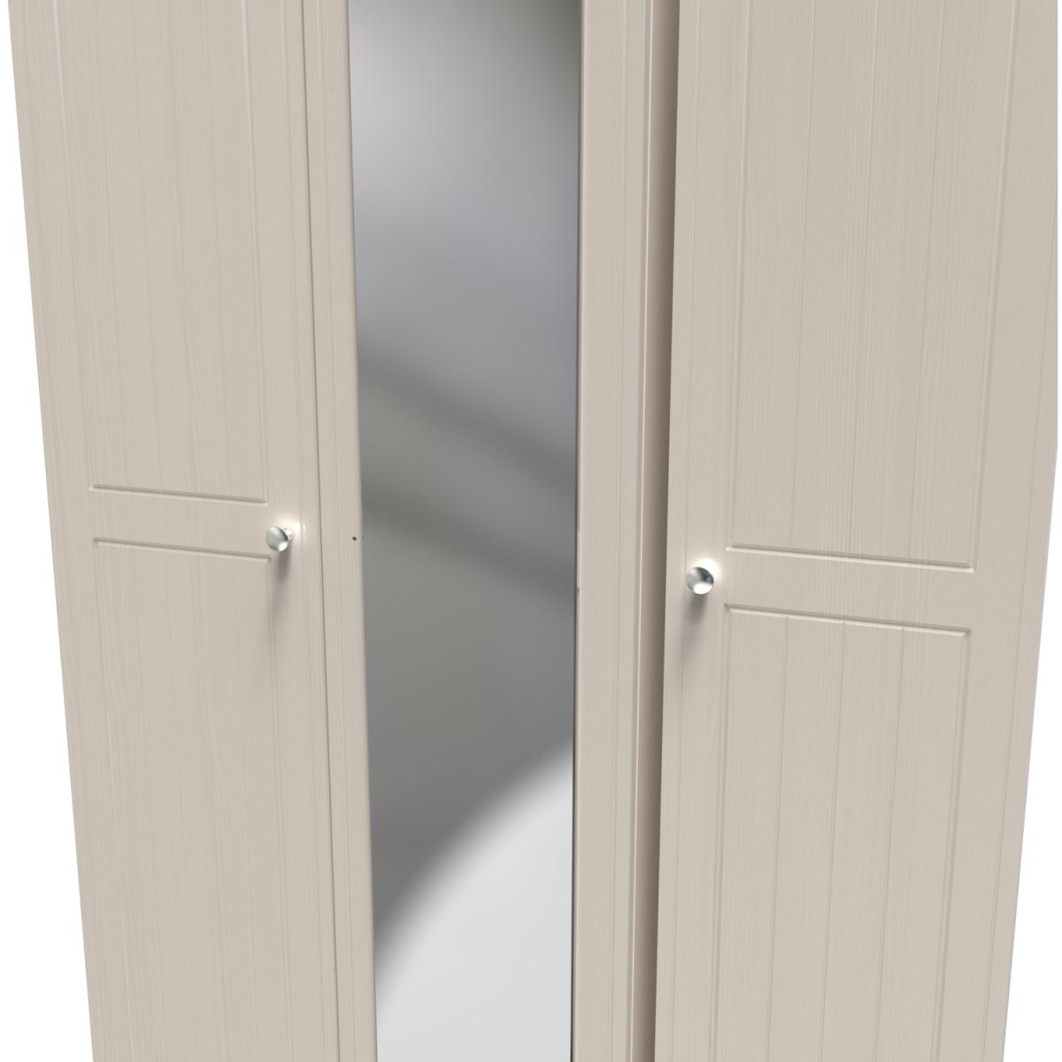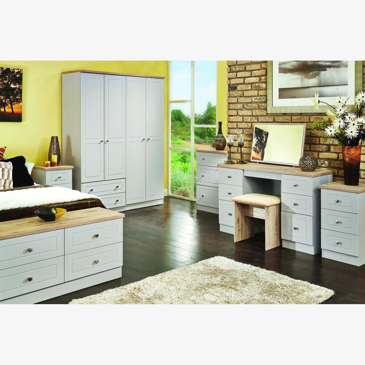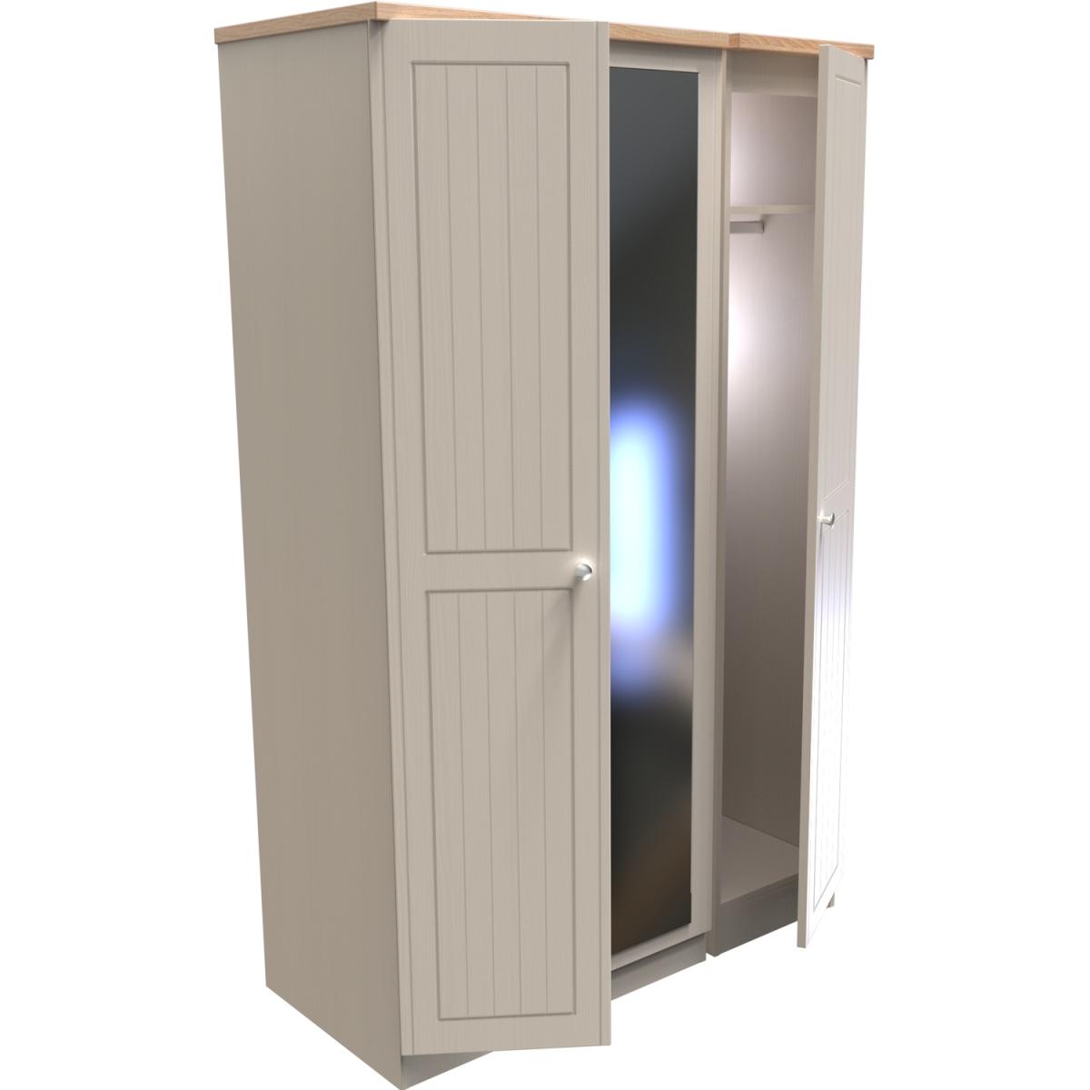 This full height triple 3 door wardrobe is perfect for any bedroom when a normal wardrobe is just not large enough. Also features a full height single mirrored door. The classic, elegant Vienna range is available in a variety of painted wood finishes with natural wood effect tops and stylish chrome handles on all doors and drawers. This range boasts a classic and traditional design which will compliment a variety of traditional home dors.. All our furniture is made in the United Kingdom, to the highest quality. It is delivered direct to your location of choice by one of our two man delivery teams, and come full assembled (although legs may be removed to prevent damage in transit).