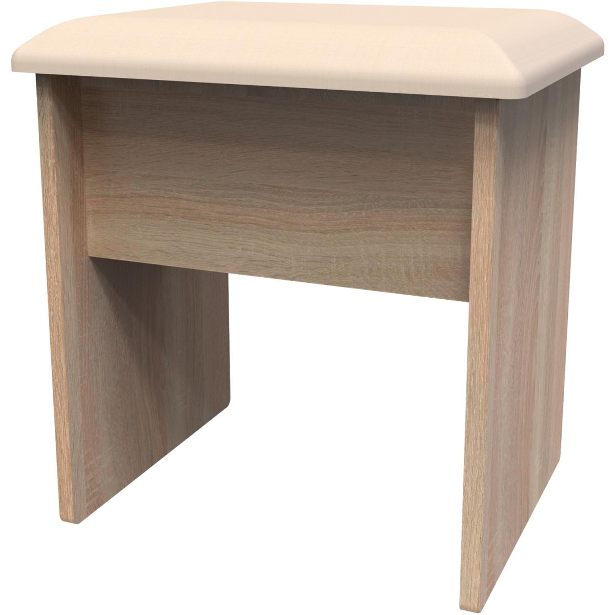 A small vanity stool. A light simple, yet sturdy design, with a soft cushioned seat. Makes an idea companion to a desk or vanity. The classic, elegant Vienna range is available in a variety of painted wood finishes with natural wood effect tops and stylish chrome handles on all doors and drawers. This range boasts a classic and traditional design which will compliment a variety of traditional home dors.. All our furniture is made in the United Kingdom, to the highest quality. It is delivered direct to your location of choice by one of our two man delivery teams, and come full assembled (although legs may be removed to prevent damage in transit).
