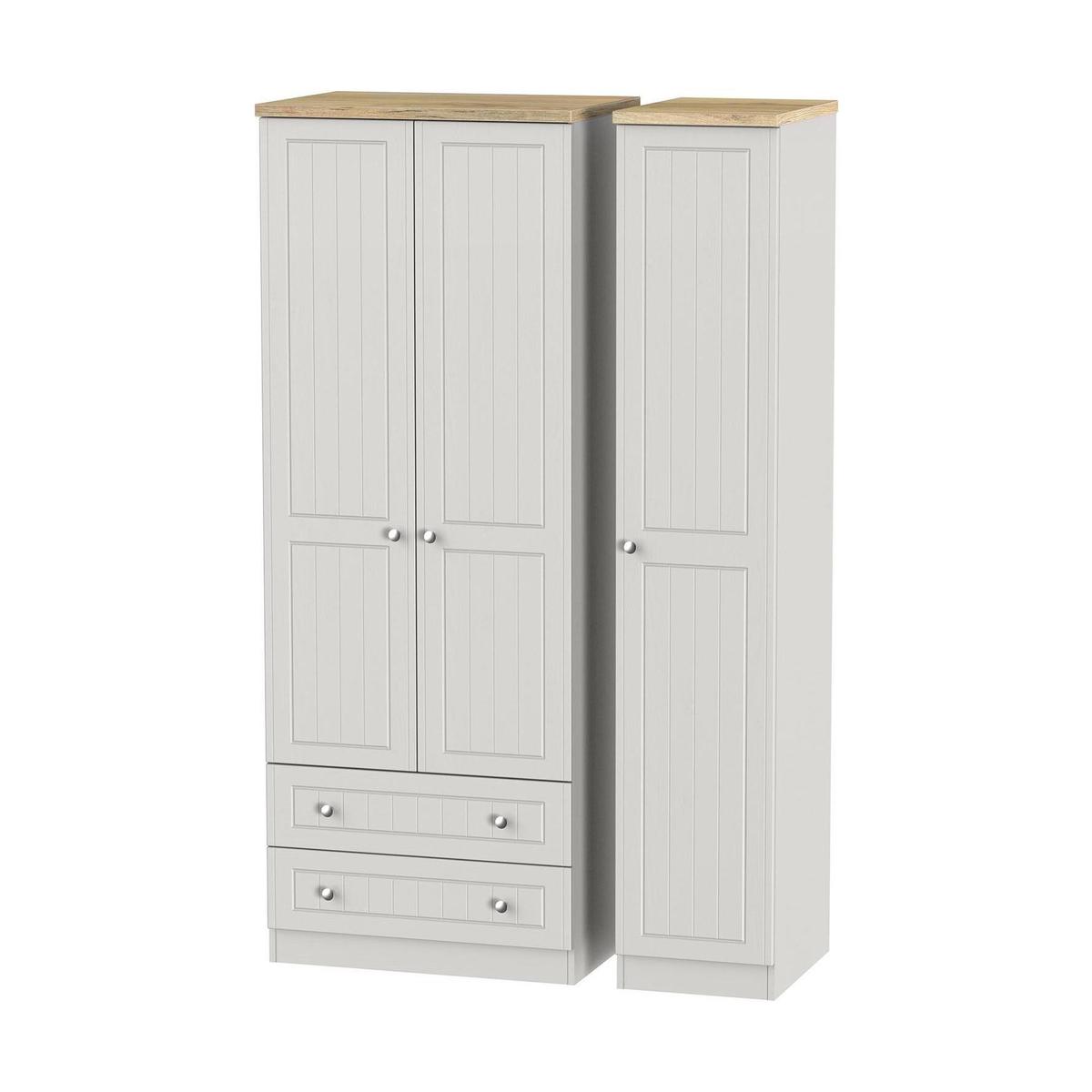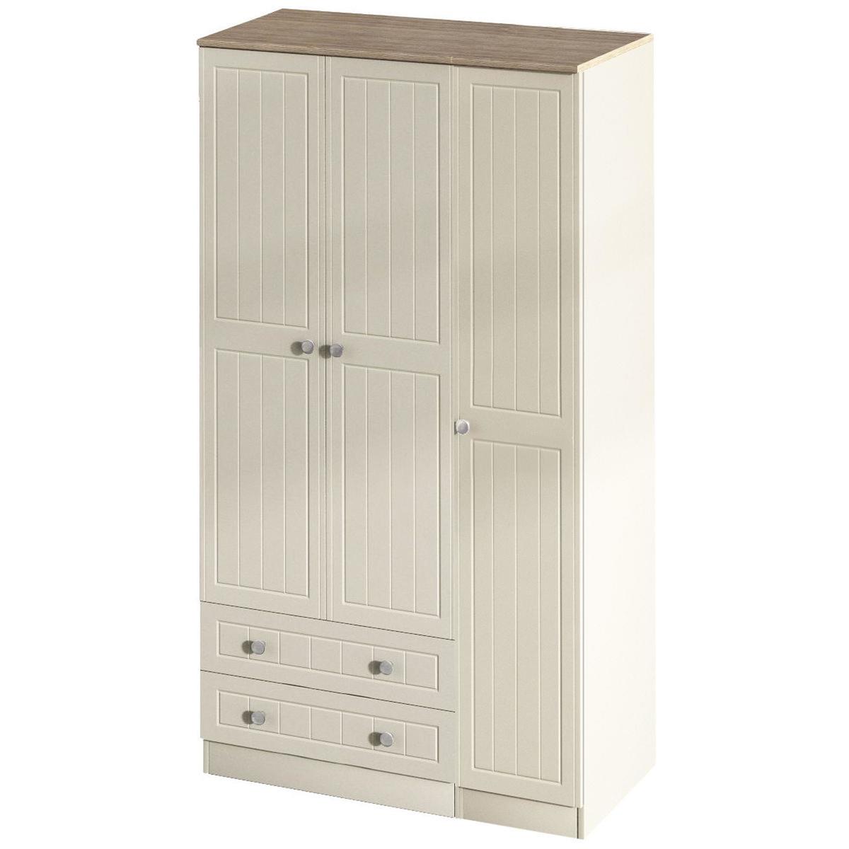 Blending functionality and style, the Vienna Tall Triple 2 Drawer Wardrobe will make for an excellent addition to your home. With two spacious drawers, ample storage space inside and a wonderful contrasting oak top, this piece will really lighten up your bedroom. The Vienna range comes available in both cream and kaschmir. Please Note: Some of our assembled furniture is quite large, please fully check the dimensions to ensure that your furniture will fit in your room without difficulty. Approximate dimensions are listed, please be aware that these may vary slightly. To make delivery easier the majority of our assembled furniture comes with the handles detached, these can be easily reattached once the item is unwrapped. Installation Note: This product should be fixed to a wall using a wall fastener Please note, unfortunately we cannot deliver this item to Northern Ireland and the Channel Islands.