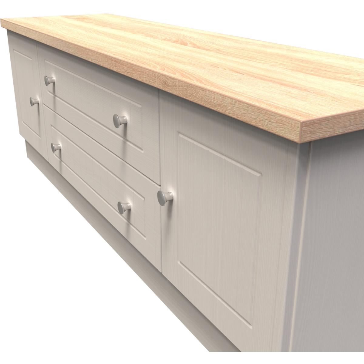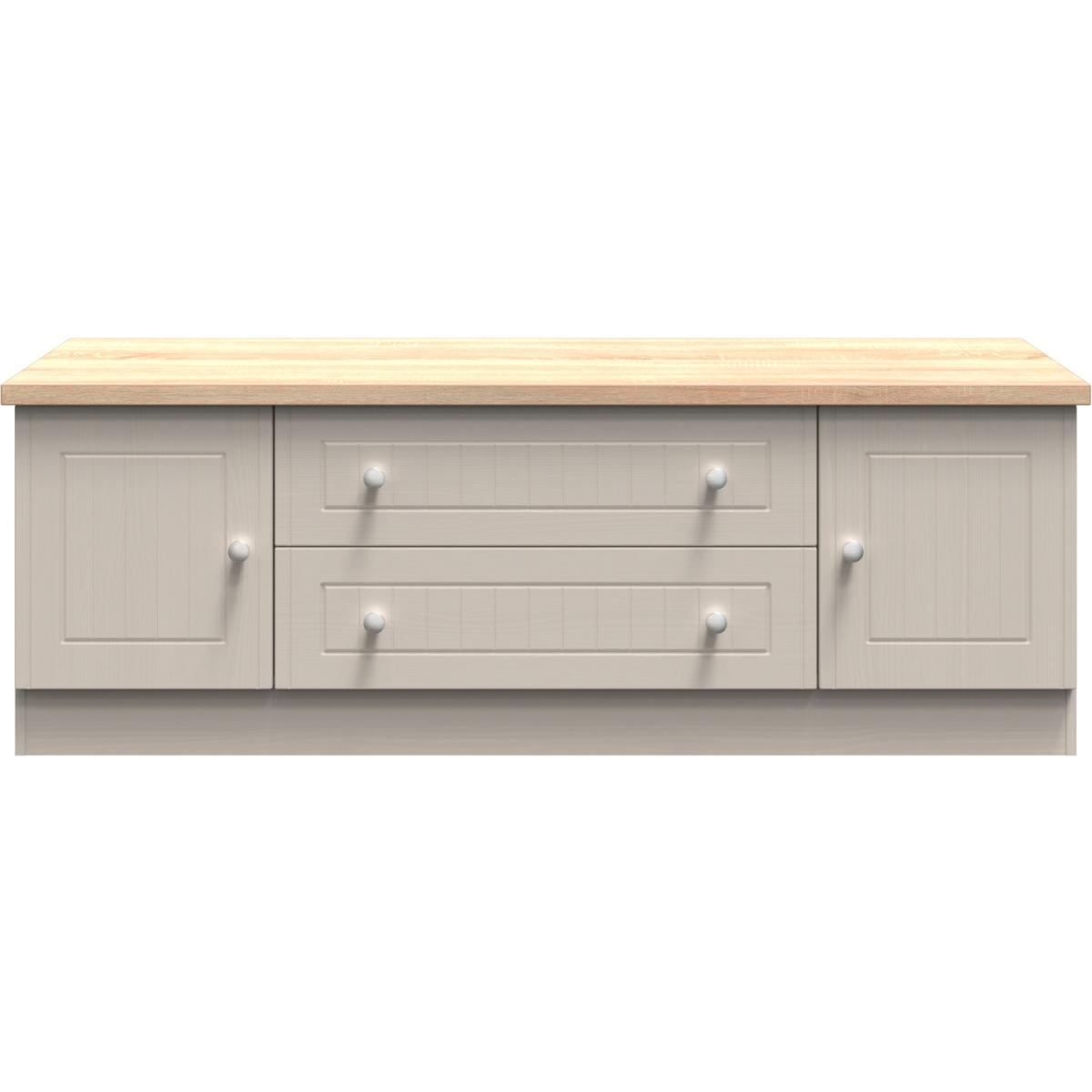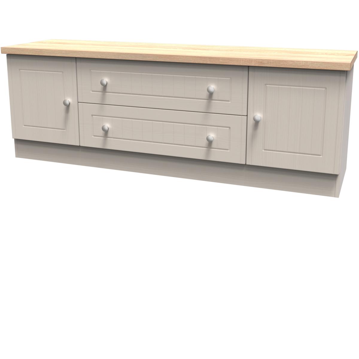 This wide low level TV Corner unit features 2 storage cupboards as well as 2 central drawers and will support a flat screen TV of up to 65". The classic, elegant Vienna range is available in a variety of painted wood finishes with natural wood effect tops and stylish chrome handles on all doors and drawers. This range boasts a classic and traditional design which will compliment a variety of traditional home dors.. All our furniture is made in the United Kingdom, to the highest quality. It is delivered direct to your location of choice by one of our two man delivery teams, and come full assembled (although legs may be removed to prevent damage in transit).
