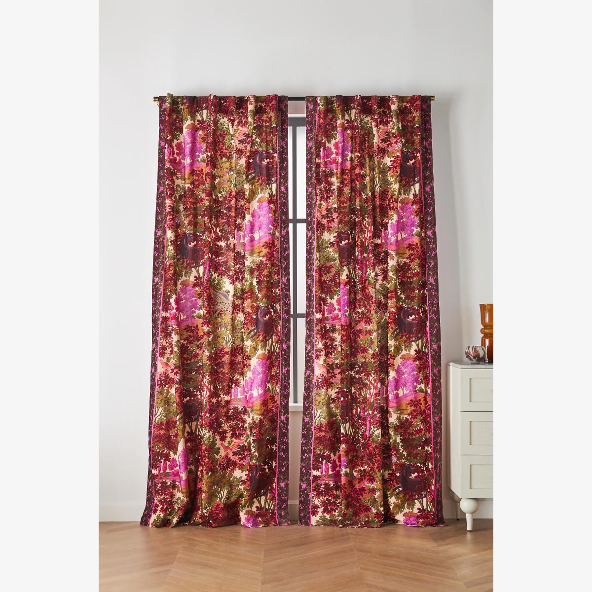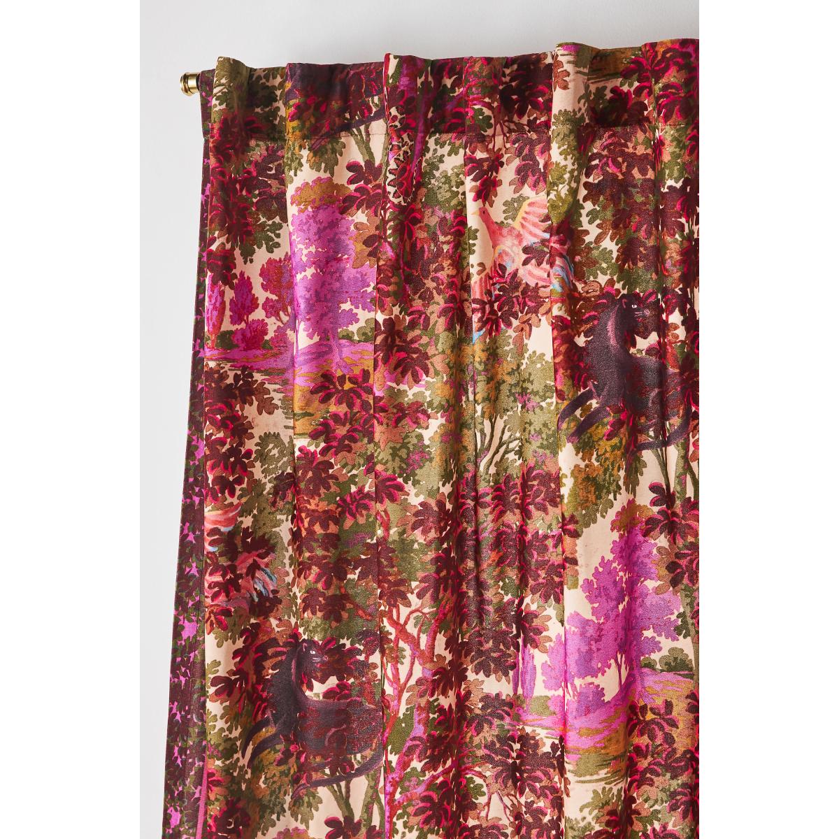 Crafted of soft, luxurious cotton velvet cloaked with decorative foliage, flora and fauna, this curtain whisks an enchanting touch to any room in your home. Vienne Velvet Curtain by Anthropologie in Pink Size: 108", Cotton