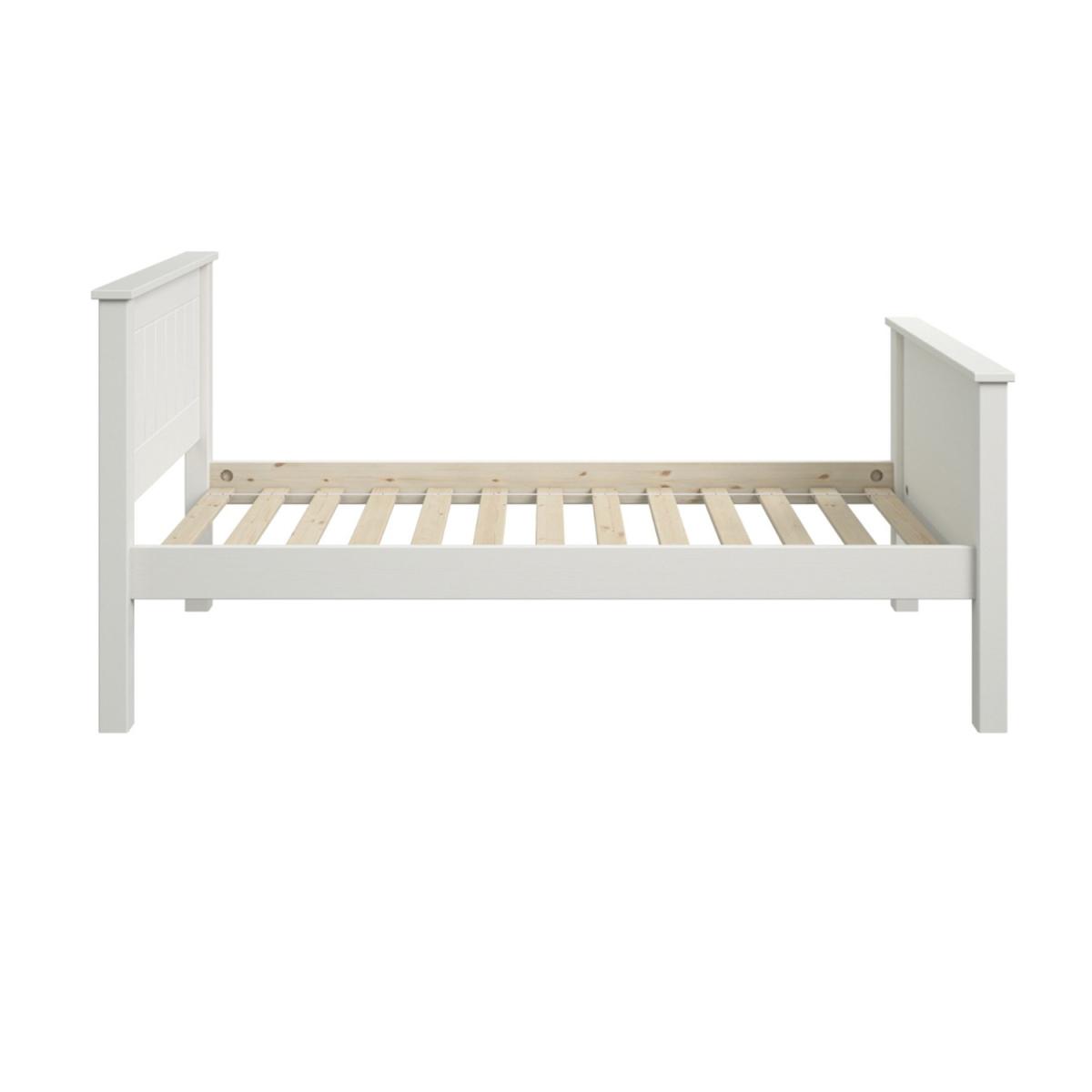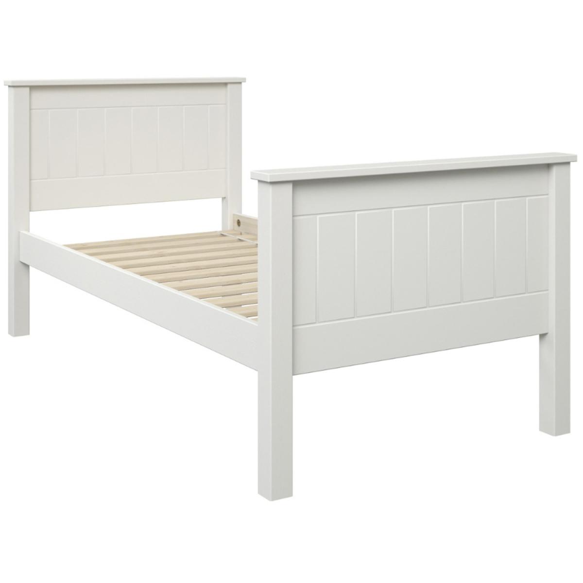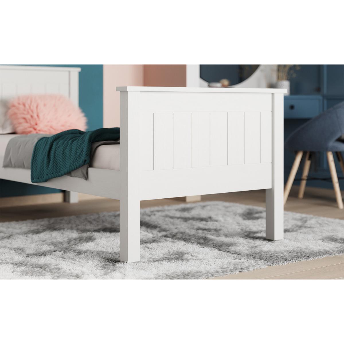 This classic solid wooden contemporary designed bed frame will fit into any bedroom setting with ease and alongside the structural rigidity will help to increase the longevity of the frame. Crafted from Scandinavian Pine, the frame boasts a natural aesthetic in either a solid white or cool grey colour coating that will be sure to add freshness and light to your room. The slatted base has many benefits such as keeping your mattress feeling like its original firmness which can help to provide a good night's sleep. Also featured is a stylish solid shaker headboard/footboard which is flexible for all home interiors. The Viera is available in a single continental mattress configuration and we recommend no more than a 16cm thick Mattress for this product due to safety reasons. All Noomi beds are certified, meaning the solid wood is sourced from sustainably managed forests. The Pine is coated with a non-toxic, eco-friendly water-based paint in both a white and grey option. Each individual piece of pine is moisture tested to ensure a strong, long-lasting build. Noomi uses only ethically sourced Solid Scandinavian pine, which grows straighter, stronger and with fewer knots due to the cold atmosphere in the Nordic regions.
