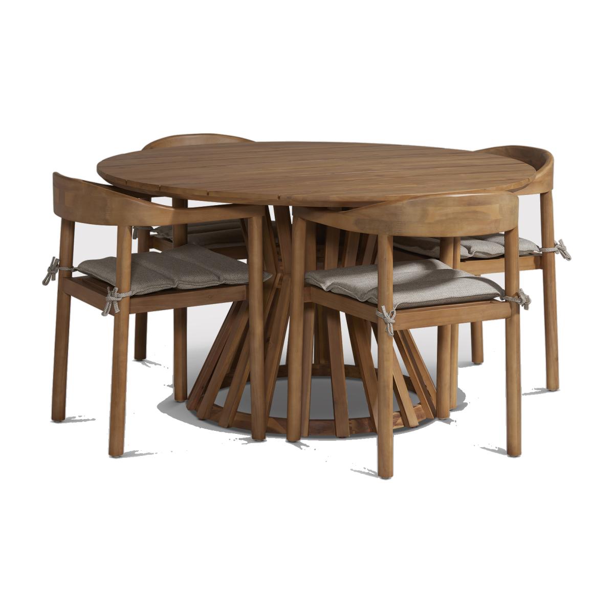 Invite the family round this summer to be seated at your stunning new Vigo Dining Table with 4 Chairs. Crafted using quality acacia wood in a natural light teak finish, the Vigo Dining Table and Chairs is perfect for those who wants something organic that will blend in with the great outdoors. There is plenty of room around the table, and the Vigo Chairs feature a soft cushion pad for extra comfort.