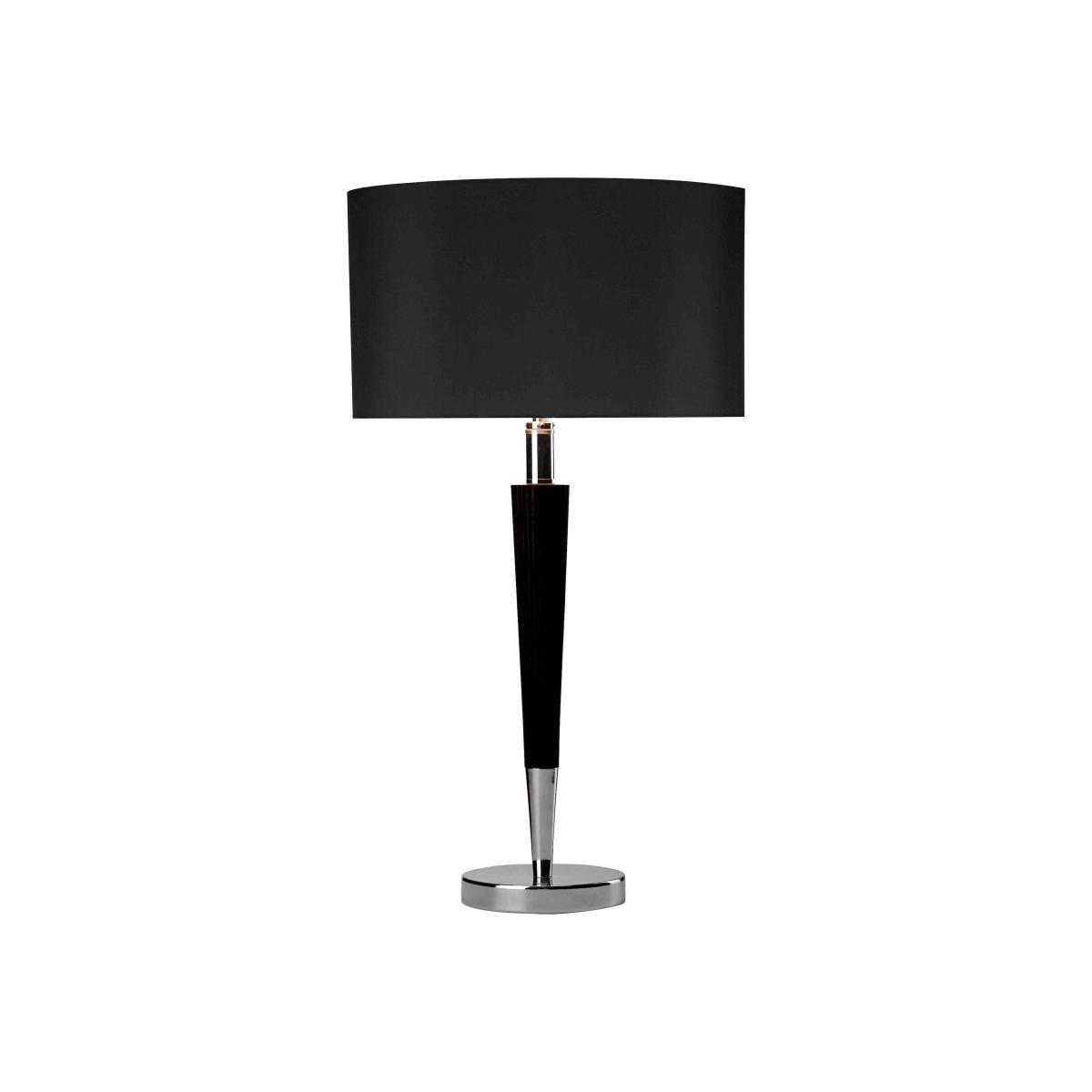 This contemporary table lamp by Där Lighting showcases a simple monochromatic colour scheme alongside a creative selection of materials that include wood and polished metal. Why you'll love it Less is more with this slender monochromatic table lamp. Elegant minimalist style. Base is made of ribbed wood with polished chrome-effect accents. Black linen drum shade with light-reflecting white laminate interior. The perfect table lamp for a sophisticated living room or bedroom. This table lamp is part of the Furniture Village lighting collection. What you need to know Steel and wood base. Linen shade. In-line rocker switch. Supplied with 100 cm cable. Requires 1 x E27 bulb max. 60. W, not supplied. Base dimensions Height: 30 cm (12 in). Depth: 30 cm (12 in). Width: 63 cm (25 in). Shade dimensions Height: 20 cm (8 in). Diameter: 30 cm (12 in).