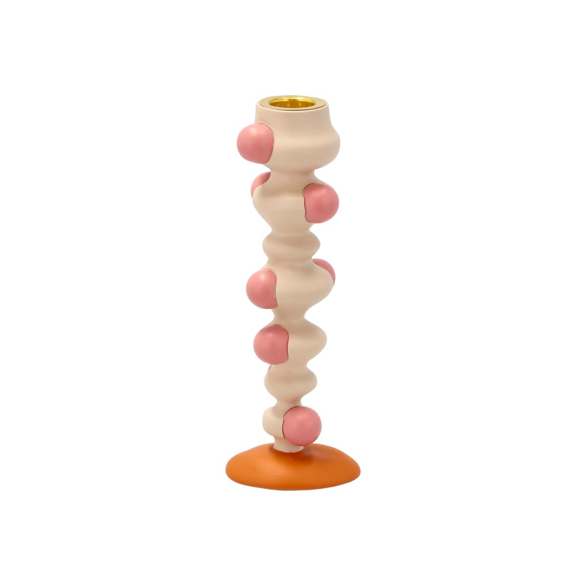 I really like this candle holder because of its playful yet elegant design, making it a versatile addition to both modern and eclectic interiors. The off-white and pink tones offer a subtle colour palette that can complement a soft, muted colour scheme or add a touch of warmth to more neutral spaces. It works particularly well in living rooms or open-plan dining areas where it can serve as a statement piece on a sideboard or centre table. Practical styling tips include grouping it with other minimalist or textured accessories, or using it as a centrepiece mixed with greenery or candles of varying heights for an engaging, layered look. Its height also makes it ideal for creating a cosy ambiance when paired with taper candles.