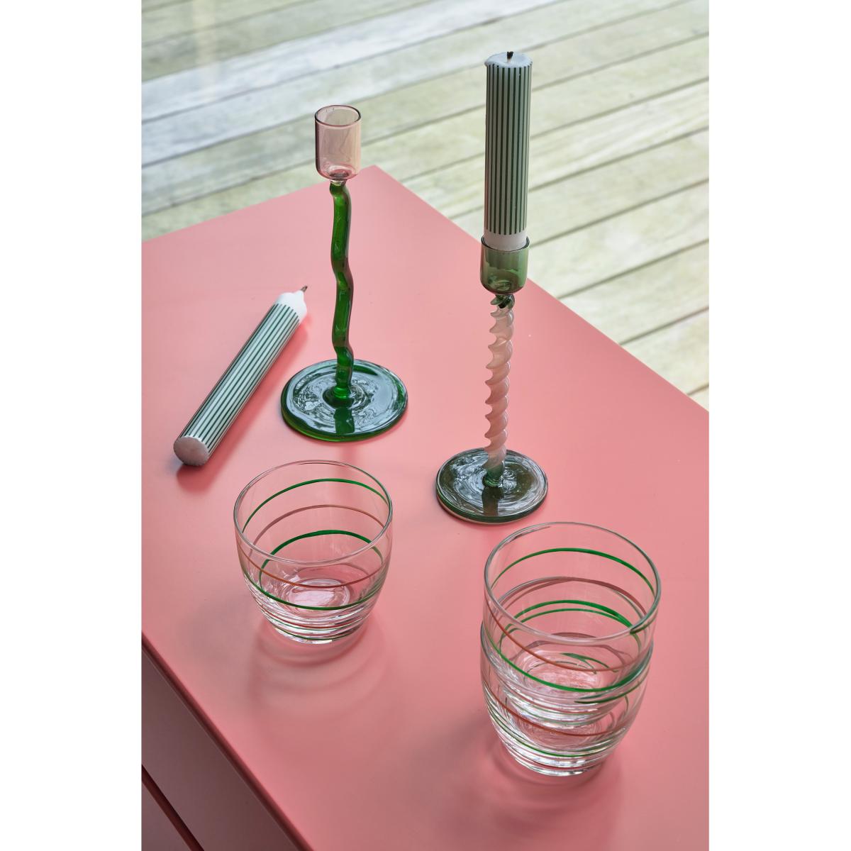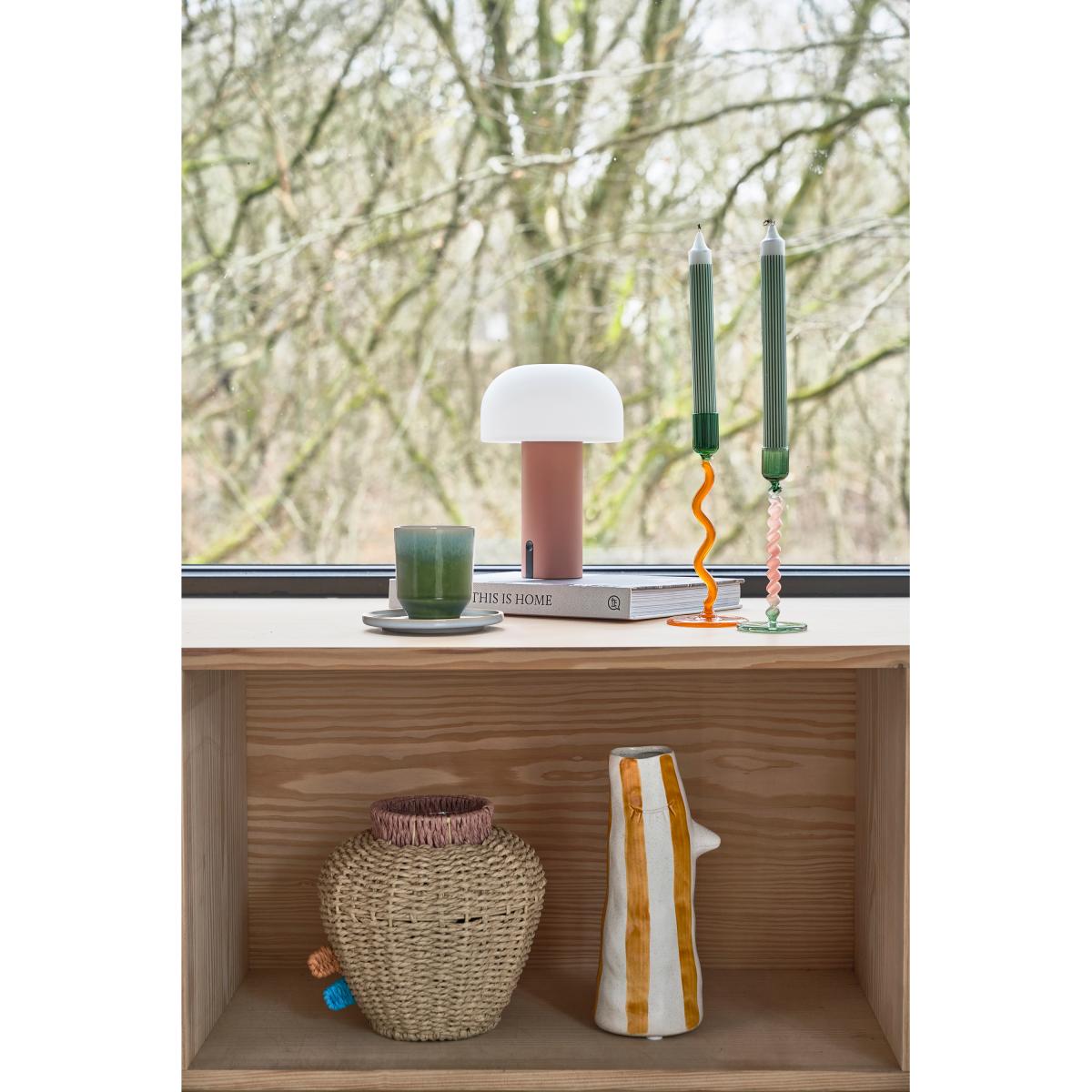 I love this green-pink candlestick for its bold colour combination and sculptural form-it's an eye-catching piece that works well as a statement on a console table or sideboard. Its playful yet elegant aesthetic makes it versatile across contemporary and eclectic interiors. To style it effectively, consider pairing it with neutral surroundings to make the colours pop, or cluster it with other candlesticks of varying heights for an interesting centrepiece. It's also worth noting that because of its vibrant colours, it can bring a lively touch to both cosy wine-cellar-inspired spaces and bright, airy living rooms. Practical tips include ensuring your candles complement the colour scheme-think soft pinks or contrasting darks-to really make the colours stand out.