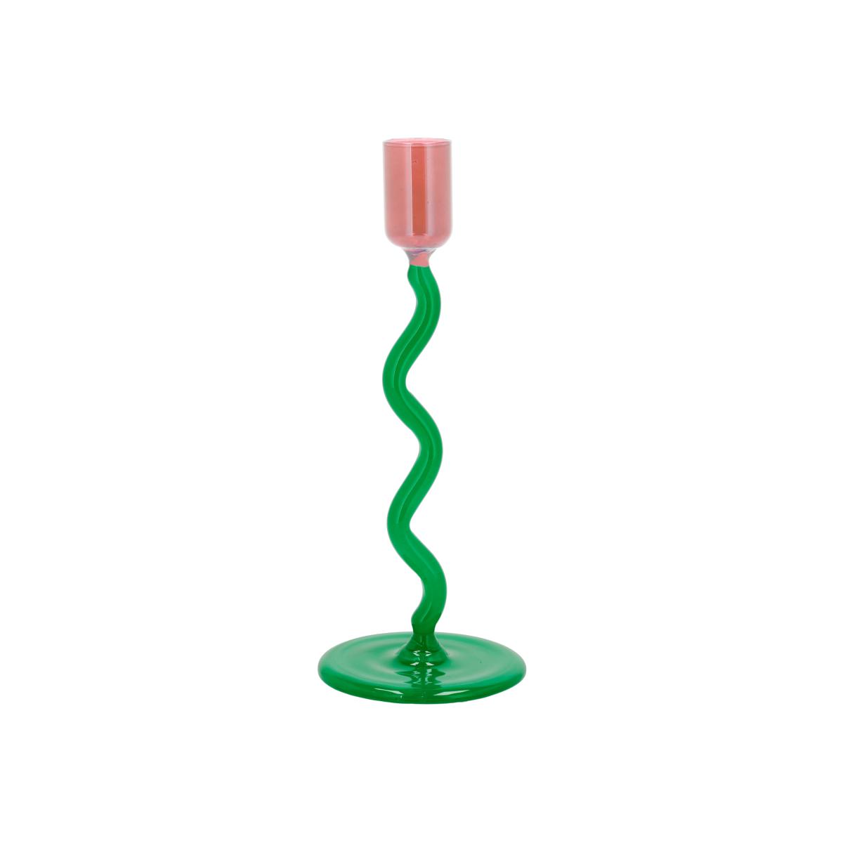 I love this candlestick for its playful design and bold colour choice. Its sculptural, wavy shape adds a contemporary touch that works well in modern or eclectic interiors. Because of its vibrant green and pink hues, it’s a great statement piece that can elevate a neutral sideboard or dining table. For styling tips, consider placing it alongside minimalist tableware or greenery to highlight its colourful form without overpowering the space. It’s particularly effective in relaxed, informal settings, where its fun character can be fully appreciated, but it can also add a pop of colour in more sophisticated schemes when used sparingly.