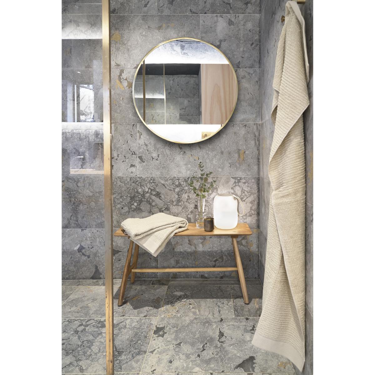 I love this Vardo mirror for its clean, modern aesthetic with a touch of luxe thanks to the brass frame. Its versatile size makes it a great statement piece in an entryway or above a console table, but it can also work well in bedrooms or living spaces for reflection and light enhancement. The brass finish adds warmth and sophistication, making it suitable for both contemporary and more classic interiors. For styling, consider pairing it with other brass accessories or against textured wallpaper to make it stand out, and hang it at eye level for the best visual impact and practical use.