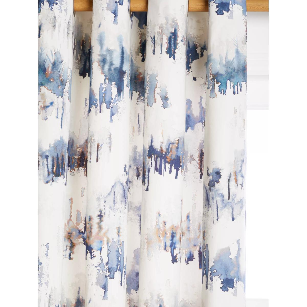 Lined eyelet curtains with a watercolour-effect print reminiscent of trees. The lining adds the perfect finish, improving the drape and enhancing the vibrancy of the curtain. The width stated indicates the size of one curtain panel when laid completely flat. This pack contains two panels, and the track/pole length we've recommended allows for the two panels to be gathered when the curtains are drawn. For a fuller look, increase the curtain width. One pair of 167cm width curtains will fit a curtain track/pole size of 133-167cm One pair of 228cm width curtains will fit a curtain track/pole size of 182-228cm Worth knowing... We package our curtains in recycled materials to keep them protected whilst they make their way to you. This means that when they arrive there could be some creases in them. We recommend you hang them for a few days to allow them to flatten and for the creases to fall out. If after this period your curtains still show signs of being folded then follow the ironing instructions on the back of the packaging. Be aware that each style of curtain has different ironing instructions, including heat limitations according to the fabric, so do make sure you follow the guidance provided to get the best results. Do you need a curtain pole/track and accessories? Shop them here.