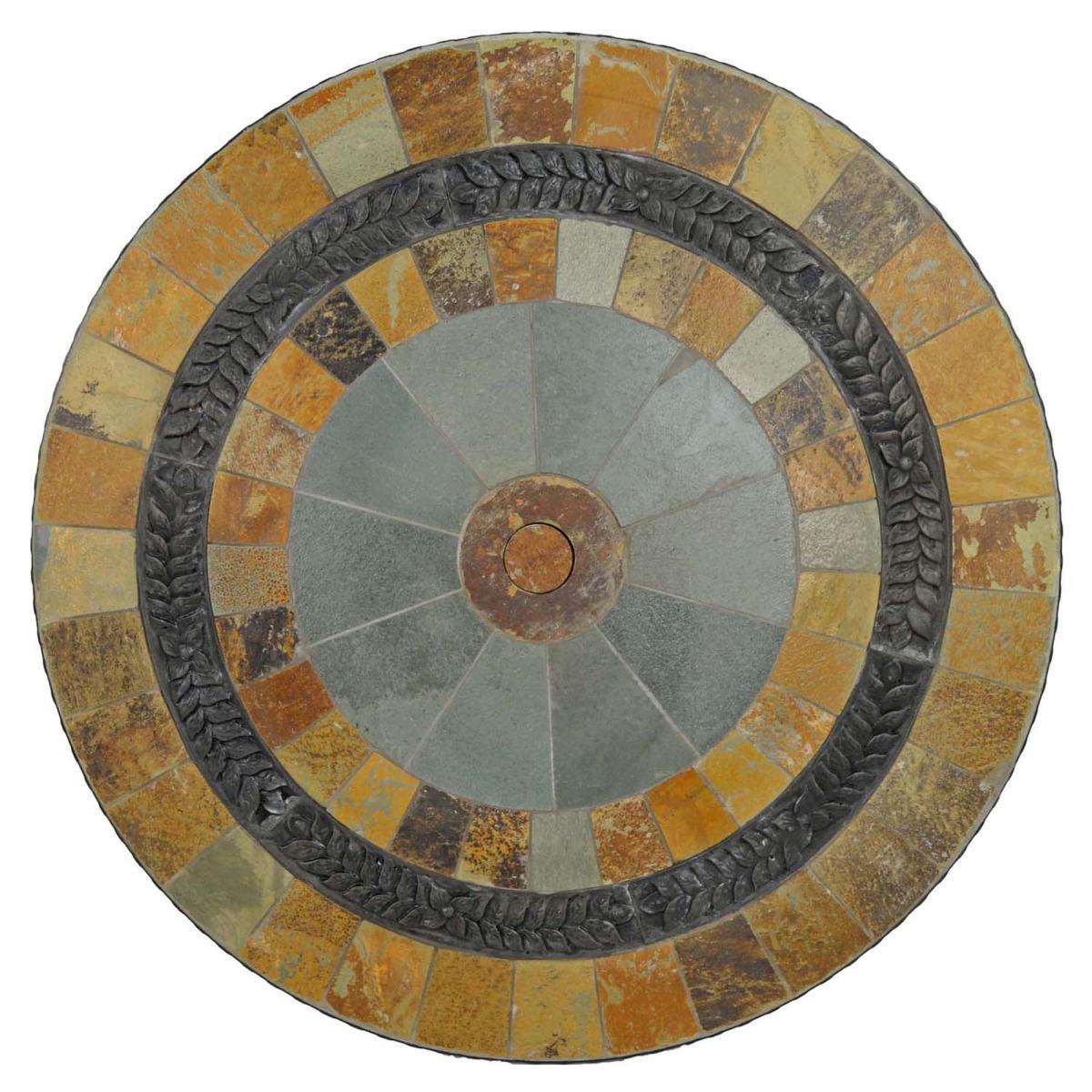 Outdoor Garden Table with Faux-marbled Top, Umbrella Hole for Patio - Black