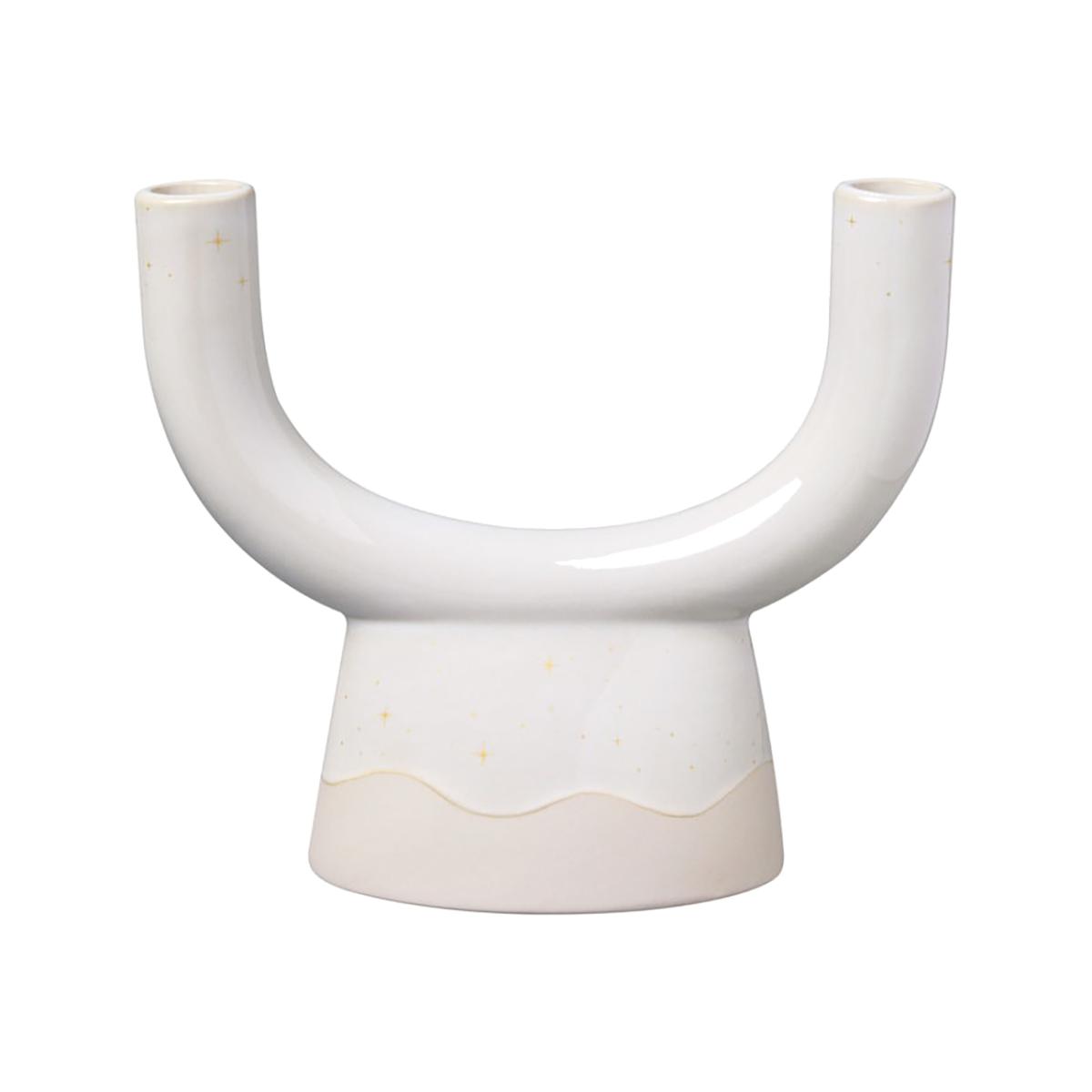 I love this piece because of its clean, modern silhouette and versatile colour palette, making it a great addition to contemporary and minimalist interiors. The U-shape design adds visual interest without overwhelming other decor, and the white-beige finish ensures it pairs effortlessly with a wide range of colour schemes. It works well as a centrepiece on a dining table, fireplace mantel, or sideboard, especially when grouped with other textured or metallic accessories for layered styling. Practical tips include using it with tapered candles for a sleek look, or filling the U-shape with small seasonal accents or greenery to update its look throughout the year. It's a simple, elegant way to introduce ambient lighting while maintaining a sophisticated aesthetic.