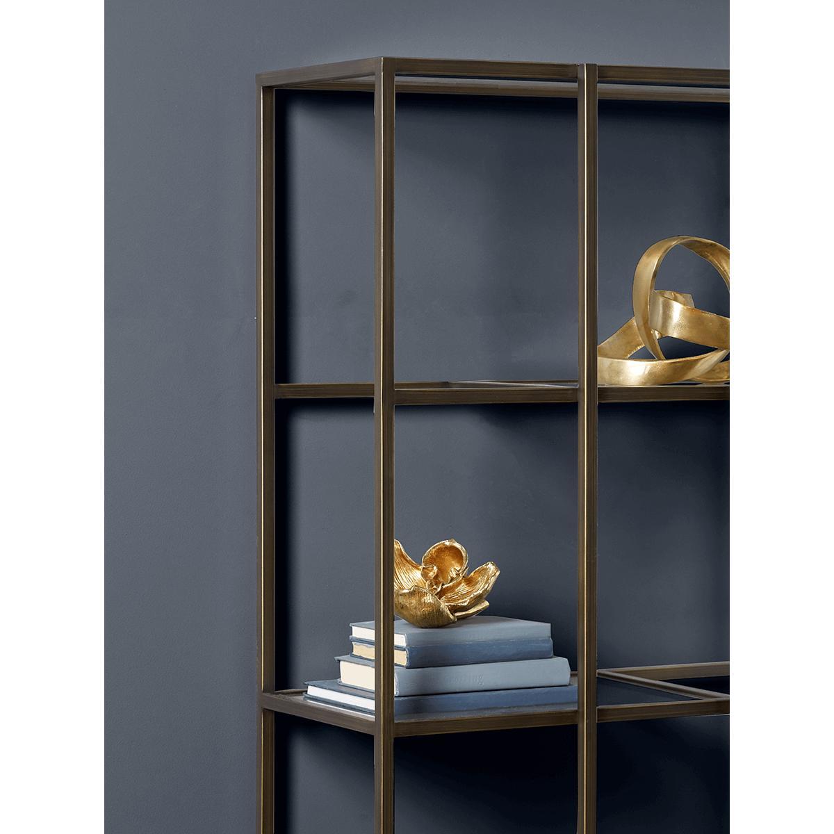 With a slender metal frame and an elegant burnished brass finish - our Villette Display Unit is perfect for adding a weighty, rich-toned element to your hallway or living space. The simple design allows for easy transit across many interior looks, while the combination of the metal framework and four modular glass shelves makes for an impactful design. Discover more from our. Villette. Range.