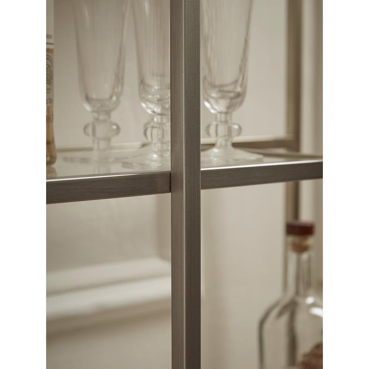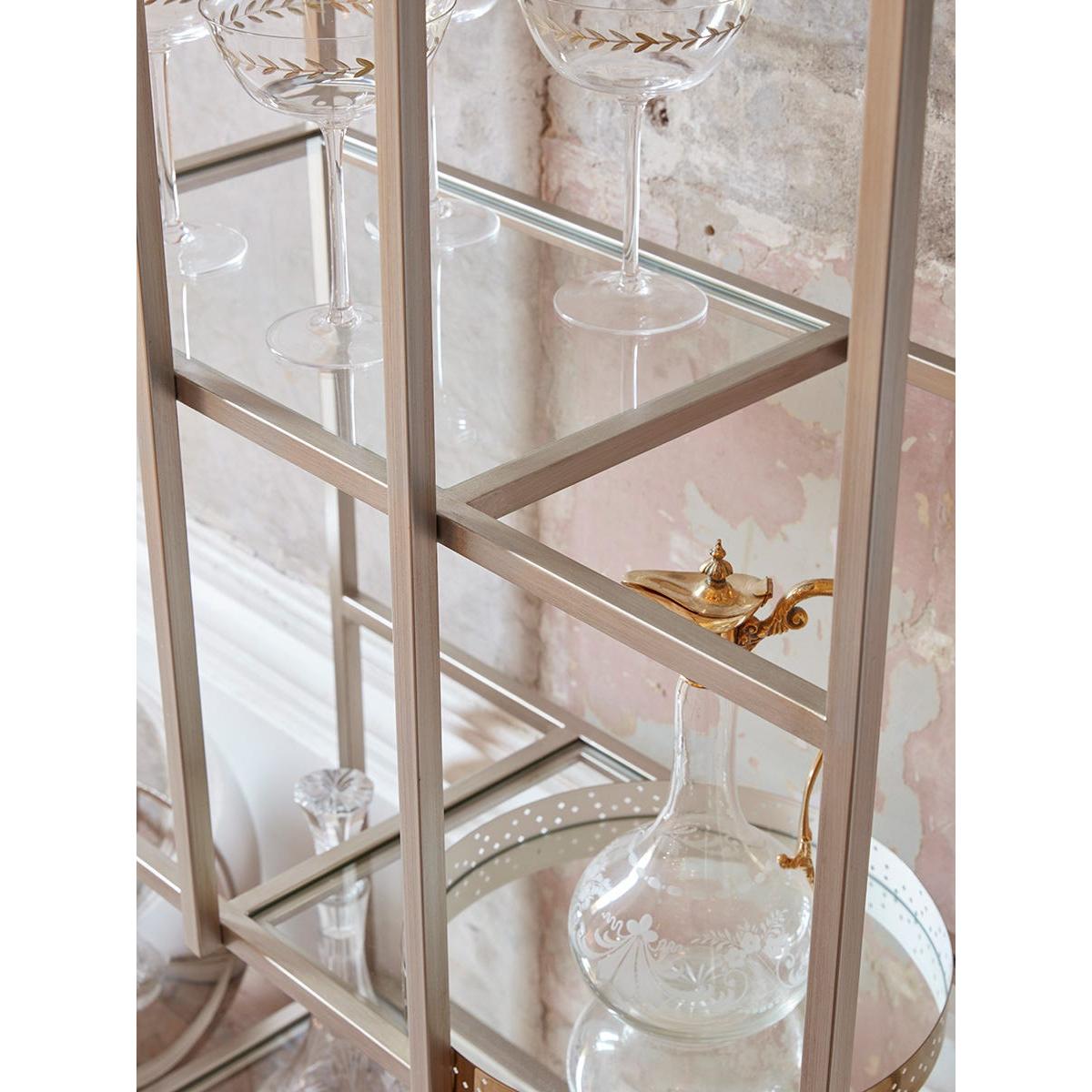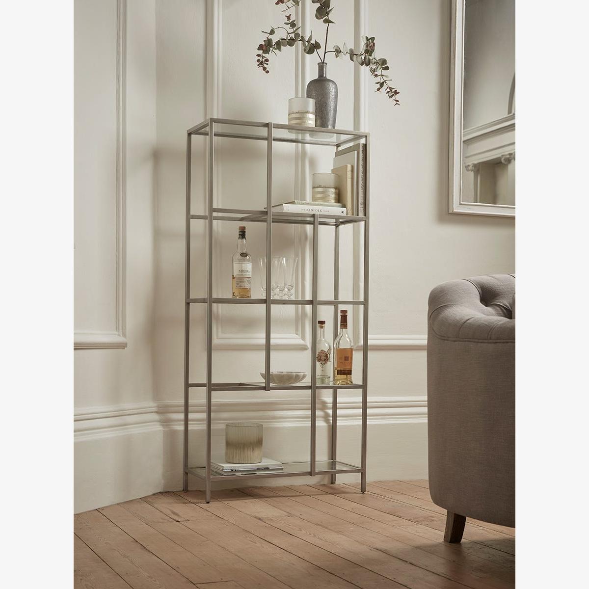 A fresh addition to our Villette range, this display unit fuses the same statement good looks and practicality as other pieces in the collection. With a slender metal frame and an elegant silver finish - our Villette Display Unit is perfect for adding a weighty, reflective element to your hallway or living space. The clean design allows for easy transit across many interior looks, while the combination of the metal framework and four modular glass shelves makes for an impactful design.