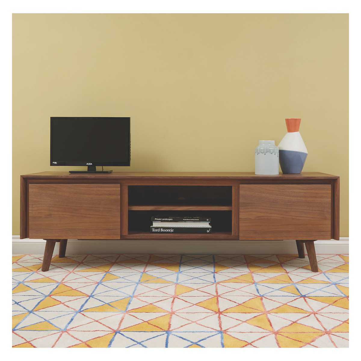 I love this oak TV stand for its clean, minimalist design and warm wood tone, which adds a natural, soothing touch to any living space. It works especially well in Scandi, modern, or mid-century interiors, where simple, functional pieces are key. Practical styling tips include pairing it with textured cushions and cosy throws nearby or placing decorative objects like vases or books on top for a curated look. The two doors provide handy storage for away-the-clutter essentials, making it both stylish and functional. Keep the space around it uncluttered to highlight its sleek lines, and consider positioning it against a neutral or pastel wall to really let the natural oak finish shine.