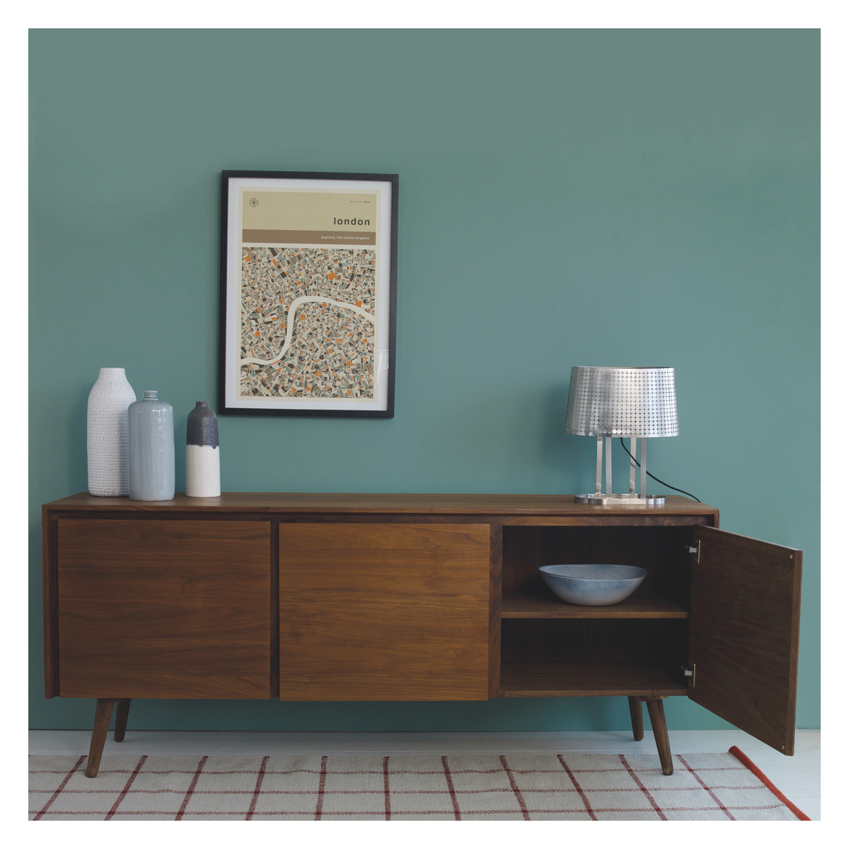The Vince walnut 3 door sideboard is a contemporary design with a mid-century influence, characterised by its slender turned legs and clean silhouette. Its 3 interior shelves provide generous storage space for tableware, linens and more. Handle-less doors are recessed into the walnut veneered frame to maintain its streamlined, retro appearance. Part of the Vince furniture range and exclusive to Habitat, the sideboard is also available as a 2 door sideboard and in oak.