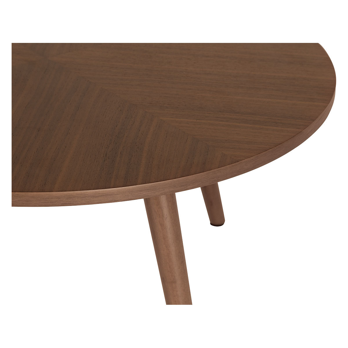 Introduce a touch of mid-century design into your home with the Vince walnut coffee table. Featuring a rounded profile with slender turned solid wood legs, this design-led piece is crafted from walnut veneer to showcase the intricate grain of the wood which catches the light to enhance both its warmth and rich colour. With a small footprint, Vince works just as well in small spaces and provides a great focal point in both classic and contemporary homes. Part of the Vince range, dining and storage furniture is also available.