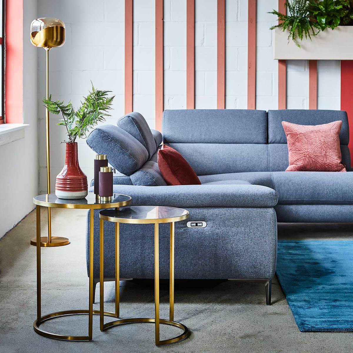 A vintage metal frame with a striking brass finish is the perfect match for the Vincenti Side Table’s sleek bluestone top. With raw materials that blend right into an industrial décor, the Vincenti’s round shape adds a sense of softness – ideal for complementing the soft leathers and lush greenery of an urban-nordic inspired interior. Available in two sizes, when paired, the two create stylish set that is sure to impress as well as provide plenty of stunning surface space.