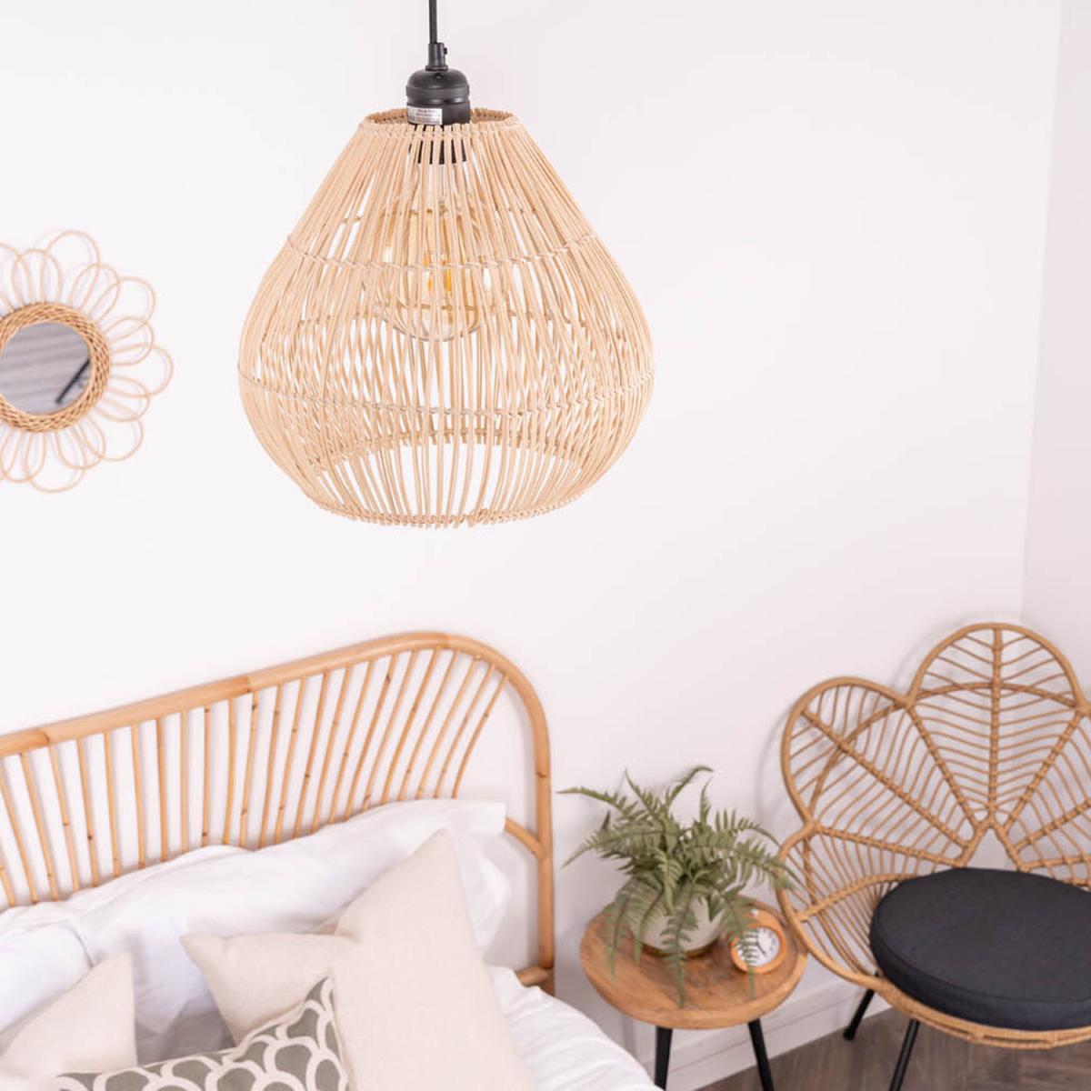 Have you ever wanted to bring the beauty of nature indoors Look no further than our Vine Natural Rattan Teardrop Easy Fit Pendant Shade. Made from woven rattan, this pendant shade adds a touch of organic style to any room. Its neutral tone complements a variety of color palettes, making it easy to incorporate into your existing decor. Plus, its easy-fit design means you can install it effortlessly, instantly transforming your space. Bring the warmth and natural charm of rattan into your home with our Vine Natural Rattan Teardrop Easy Fit Pendant Shade. The Vine pendant shade attaches to any standard ceiling pendant.