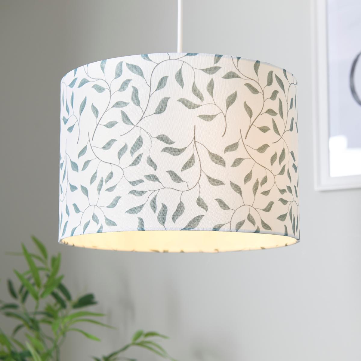An organic nature-inspired vine design printed onto a linen effect lamp shade will add subtle charm to your living space.