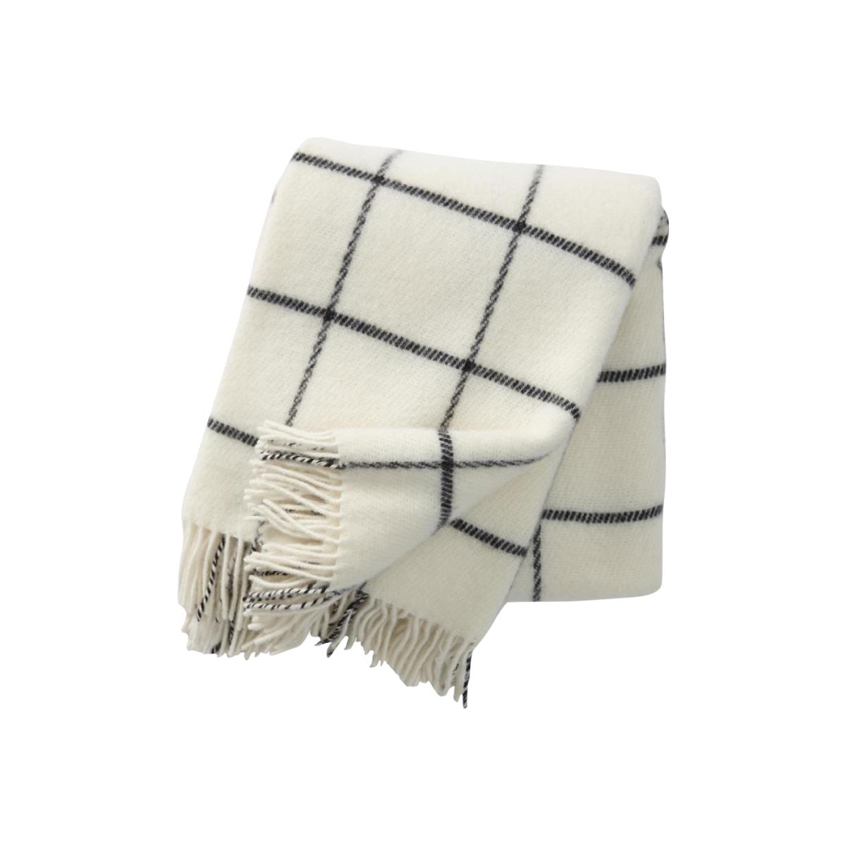 A classic checked throw in white, light grey and dark grey from the Swedish company Klippans Yllefabrik.