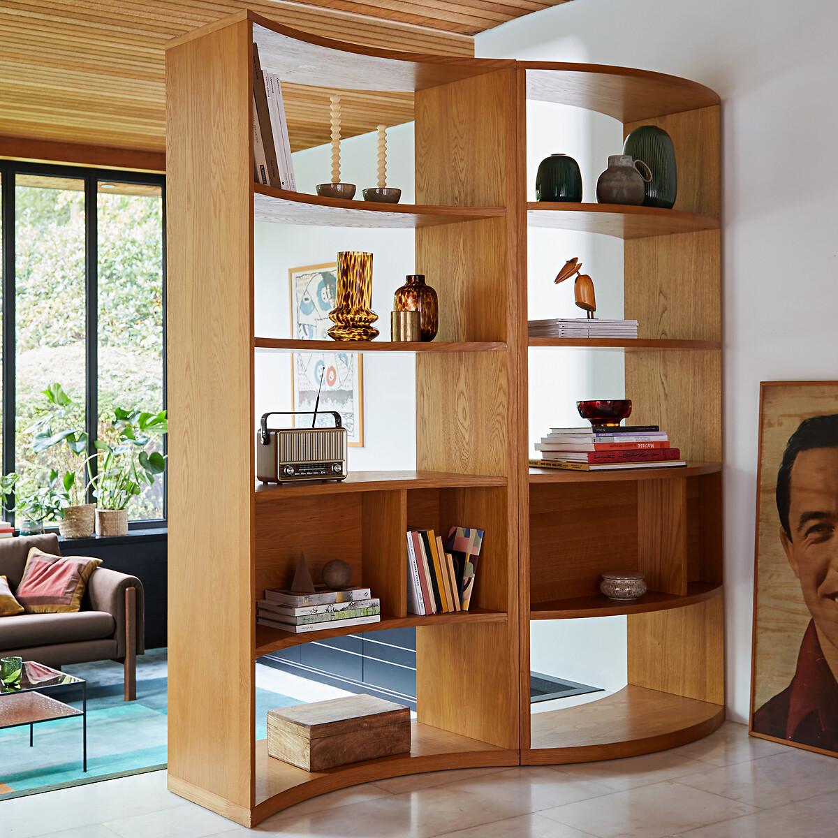 The Vinka shelf is part of our Les Ingénieux collection. Creations full of ideas to make life simpler and everyday life more beautiful, imagined by our designers in France..Vinka, the room divider with shelves: To reframe space and round corners. A vintage style inspired by the 70s, in soft tones of oak veneered wood: the Vinka shelf is characterised by the boldness of its curved design. The juxtaposition of several bookcases allows you to create an undulating arrangement. A signature design by La Redoute Interiors. Why you'll love this product • Combine several shelves together to create a room divider or something else... this will create a pretty wave. • FSC® certified wood from sustainably managed forests. Product Details • Wave-shaped bookcase • In FSC® certified oak-veneered MDF • 5 rounded fixed shelves • 10 fixed rounded cornicesDimensions. Overall • Width: 80cm • Height: 180cm • Depth: 46cm. Usable space • Space between shelves: 32.8cm • Space between bottom shelves: 36cmDelivery:. This product requires assembly. Available for home delivery. • WOOD FROM SUSTAINABLY MANAGED FORESTS. FSC® certified wood comes from forests that are environmentally, socially and economically well managed. Dimensions and weight of parcel2 parcels • L190 x H21 x D52cm. 45kg • L96 x H44 x D60cm. 70kg