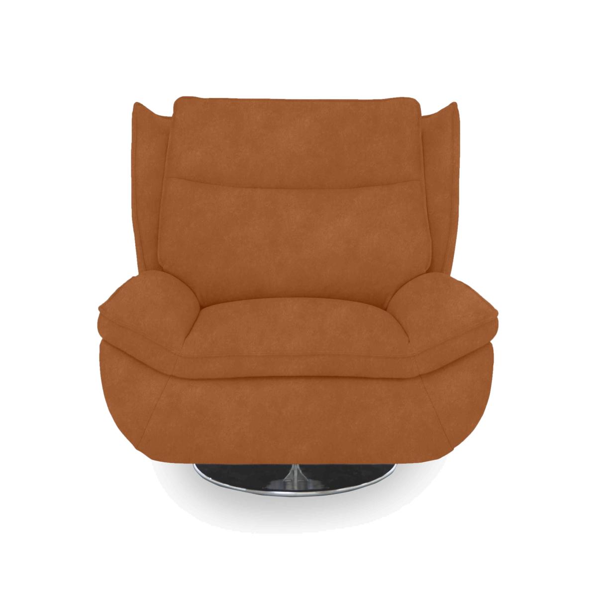 Yes, it’s every bit as comfortable as it looks. This fabulous 1970s-inspired swivel armchair offers back-hugging support, superb cushioning and brings cool style to any living space. Why you'll love it Sink into this cool 1970s-style swivel armchair. Fantastically comfortable cushioning all over – seat, back and arms. Sprung seat for real support. Sturdily constructed with a wood frame. Soft upholstery in a huge choice of fabrics. Also available with 100% leather upholstery. This swivel armchair is exclusively available at Furniture Village. What you need to know Medium comfort level. Seat suspension: pocket spring. Back suspension: webbing. Seat cushioning: foam and Dacron. Seat cushion is fixed. Back cushioning: fibre. Back cushion is fixed. Arm cushioning: foam and Dacron. Some fabrics can show wear on areas of more use or in direct sunlight. Clean regularly using a soft brush or vacuum with the curtain attachment. Deal with any spills promptly. Professional cleaning advised for oil- and grease-based stains. Please read our upholstery care guide for more advice.