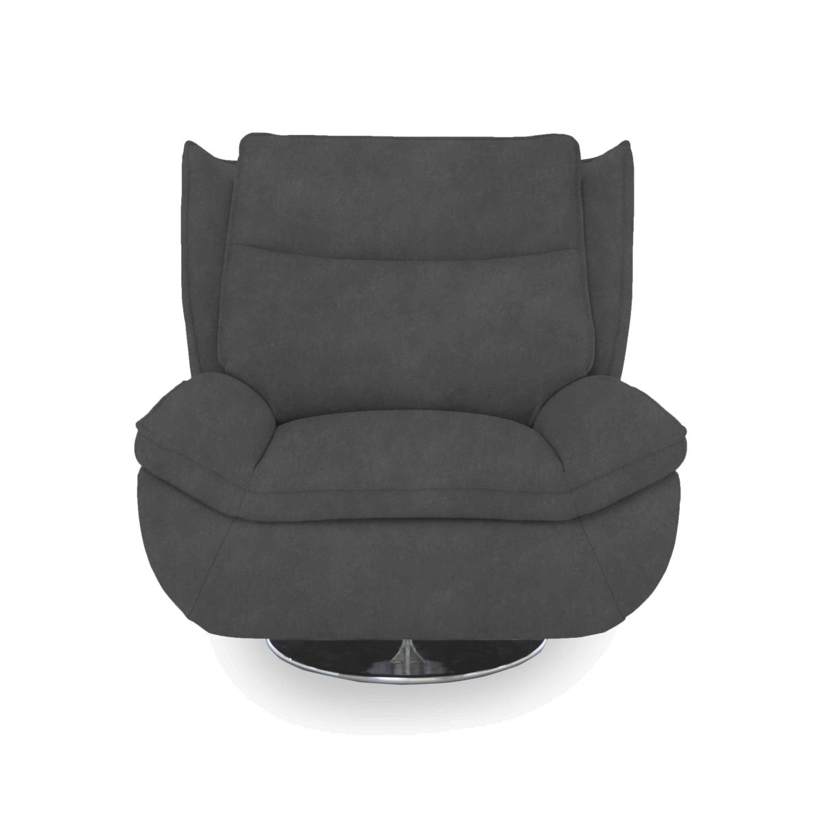 Yes, it’s every bit as comfortable as it looks. This fabulous 1970s-inspired swivel armchair offers back-hugging support, superb cushioning and brings cool style to any living space. Why you'll love it Sink into this cool 1970s-style swivel armchair. Fantastically comfortable cushioning all over – seat, back and arms. Sprung seat for real support. Sturdily constructed with a wood frame. Soft upholstery in a huge choice of fabrics. Also available with 100% leather upholstery. This swivel armchair is exclusively available at Furniture Village. What you need to know Medium comfort level. Seat suspension: pocket spring. Back suspension: webbing. Seat cushioning: foam and Dacron. Seat cushion is fixed. Back cushioning: fibre. Back cushion is fixed. Arm cushioning: foam and Dacron. Some fabrics can show wear on areas of more use or in direct sunlight. Clean regularly using a soft brush or vacuum with the curtain attachment. Deal with any spills promptly. Professional cleaning advised for oil- and grease-based stains. Please read our upholstery care guide for more advice.