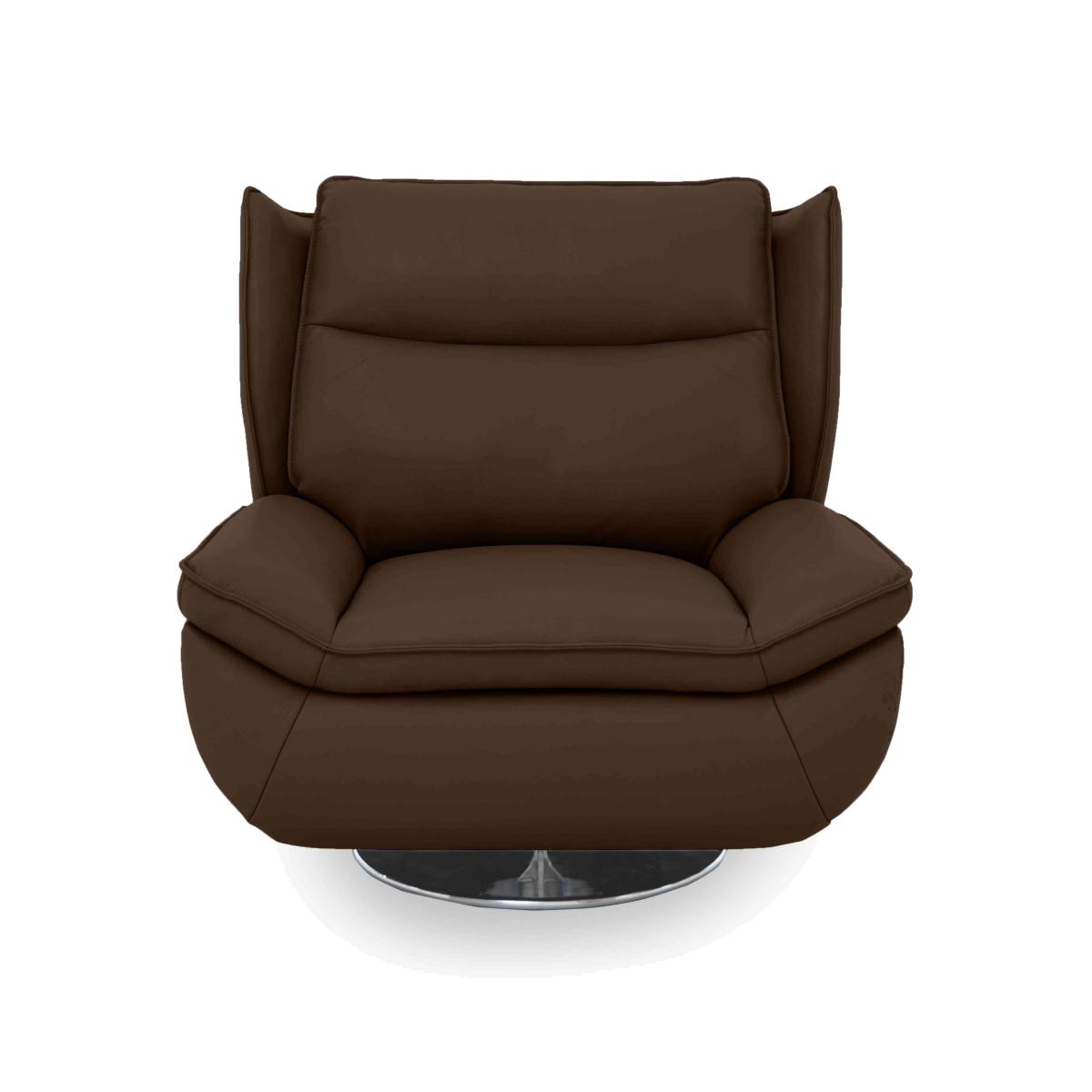 Exuding class and style, this fabulous 1970s-inspired swivel chair is fully upholstered in soft 100% leather. It’s the ultimate in cool living room style. Why you'll love it Sink into this cool 1970s-style leather swivel armchair. Fantastically comfortable cushioning all over – seat, back and arms. Sprung seat for real support. Sturdily constructed with a wood frame. 100% leather upholstery in a wide choice of colours. This leather swivel armchair is exclusively available at Furniture Village. What you need to know Medium comfort level. Seat suspension: pocket spring. Back suspension: webbing. Seat cushioning: foam and Dacron. Seat cushion is fixed. Back cushioning: fibre. Back cushion is fixed. Arm cushioning: foam and Dacron. Leather has unique marks and characteristics with variation in colour and texture. Leather softens with use. Smoothing the tops of leather cushions prevents signs of visual comfort. Please read our upholstery care guide for more advice.