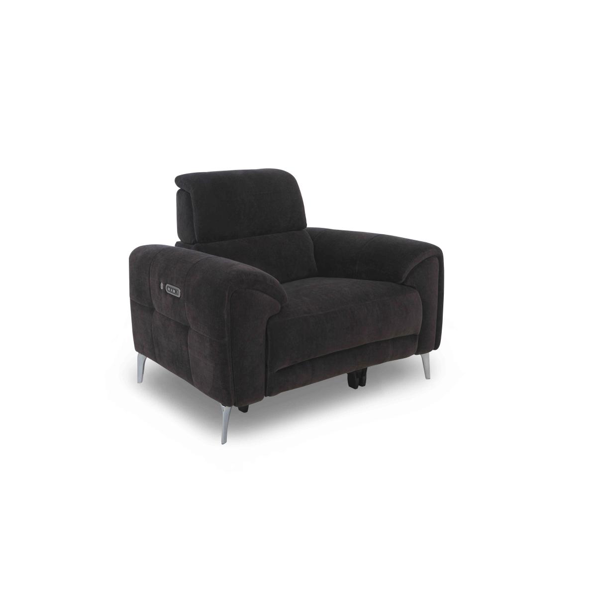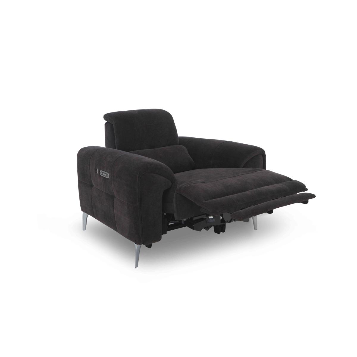 Our very stylish Vino range of sofas, armchairs and footstools goes the distance when it comes to comfort. As well as power recliners and perfect-position power headrests – both of which are independently adjustable – the collection’s sofas and chairs are available with heated seats, so it’s easy to get cosy and comfy on a chilly morning or cool evening even if you have the central heating turned down. Offered in both 100% leather and velvet-soft fabric upholstery, the collection delivers the coolest of modern style with slim metal legs, stylish yet subtly curved arms, and modern piping and buttoning. The Vino range is exclusively available at Furniture Village. Looking for the perfect armchair? Our Vino power recliner chair even has a heated seat, so you can relax in cosy comfort as well as cool modern style. Only at Furniture Village. Why you’ll love it Cool modern style and superb comfort in perfect harmony. This chair even comes with a heated seat, the ultimate luxury feature. With power recliner and perfect-position power headrest for total relaxation. Power reclining back and elevating footrest are independently adjustable. USB device charging. Fabulously comfy seat cushion has a pocket spring interior. On-trend details include metal legs, piped edges and understated buttoning. In a wide choice of stunning colours for the velvety fabric upholstery. This chair is also available with 100% leather upholstery. Exclusive to Furniture Village. This fabric power recliner chair is part of our Vino range. What you need to know Medium comfort level. Seat suspension: sinuous spring. Seat cushioning: pocket spring. Cushion is fixed. Back suspension: webbing. Back cushioning: fibre. Cushion is fixed. Arm cushioning: foam and Dacron. Feet are removable. Please allow time for new recliners to ease. Minor gaps are necessary to ensure ease of recliner motion and may be exaggerated depending on floor type. Flattening and shading of heavy wear areas on pile fabrics is unavoidable. Clean regularly using a soft brush or vacuum with the curtain attachment. Deal with any spills promptly. Professional cleaning advised for oil- and grease-based stains. Please read our upholstery care guide for more advice.