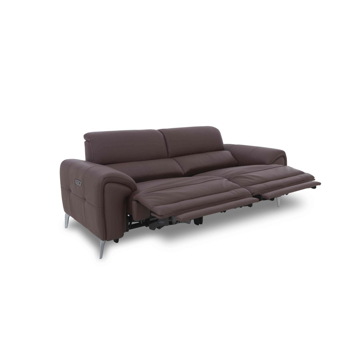 Our very stylish Vino range of sofas, armchairs and footstools goes the distance when it comes to comfort. As well as power recliners and perfect-position power headrests – both of which are independently adjustable – the collection’s sofas and chairs are available with heated seats, so it’s easy to get cosy and comfy on a chilly morning or cool evening even if you have the central heating turned down. Offered in both 100% leather and velvet-soft fabric upholstery, the collection delivers the coolest of modern style with slim metal legs, stylish yet subtly curved arms, and modern piping and buttoning. The Vino range is exclusively available at Furniture Village. This particularly large and luxurious leather sofa has pocket spring seats, cool modern style details and is even available with optional power recliners and headrests. A Furniture Village exclusive. Why you’ll love it Cool modern style and superb comfort in perfect harmony. Available with optional power features – power recliners and perfect-position power headrests. Power reclining back and elevating footrest are independently adjustable. Power sofa option also has built-in USB device charging. Fabulously comfy seat cushions have pocket spring interiors. On-trend details include metal legs, piped edges and understated buttoning. In a wide choice of stunning colours for the soft 100% leather upholstery. Exclusive to Furniture Village. This leather 3-seater sofa is part of our Vino range. What you need to know Medium comfort level. Seat suspension: sinuous spring. Seat cushioning: pocket spring. Cushions are fixed. Back suspension: webbing. Back cushioning: fibre. Cushions are fixed. Arm cushioning: foam and Dacron. Feet are removable. The non-recliner version of this sofa does not have power headrests and USB charging. Please allow time for new recliners to ease. Minor gaps are necessary to ensure ease of recliner motion and may be exaggerated depending on floor type. Leather has unique marks and characteristics with variation in colour and texture. Leather softens with use. Smoothing the tops of leather cushions prevents signs of visual comfort. Please read our upholstery care guide for more advice.