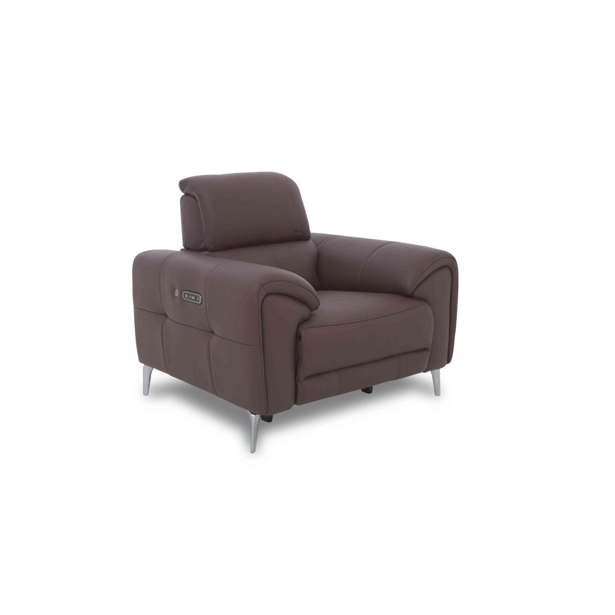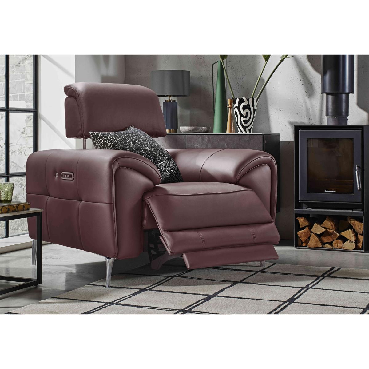 Our very stylish Vino range of sofas, armchairs and footstools goes the distance when it comes to comfort. As well as power recliners and perfect-position power headrests – both of which are independently adjustable – the collection’s sofas and chairs are available with heated seats, so it’s easy to get cosy and comfy on a chilly morning or cool evening even if you have the central heating turned down. Offered in both 100% leather and velvet-soft fabric upholstery, the collection delivers the coolest of modern style with slim metal legs, stylish yet subtly curved arms, and modern piping and buttoning. The Vino range is exclusively available at Furniture Village. Here's an armchair that redefines luxury. Beautifully upholstered in 100% leather, it has a power recliner, a power headrest, pocket spring cushioning and even a heated seat. Why you’ll love it Cool modern style and superb comfort in perfect harmony. This chair even comes with a heated seat, the ultimate luxury feature. With power recliner and perfect-position power headrest for total relaxation. Power reclining back and elevating footrest are independently adjustable. USB device charging. Fabulously comfy seat cushion has a pocket spring interior. On-trend details include metal legs, piped edges and understated buttoning. In a wide choice of stunning colours for the soft 100% leather upholstery. Exclusive to Furniture Village. This leather power recliner chair is part of our Vino range. What you need to know Medium comfort level. Seat suspension: sinuous spring. Seat cushioning: pocket spring. Cushion is fixed. Back suspension: webbing. Back cushioning: fibre. Cushion is fixed. Arm cushioning: foam and Dacron. Feet are removable. Please allow time for new recliners to ease. Minor gaps are necessary to ensure ease of recliner motion and may be exaggerated depending on floor type. Leather has unique marks and characteristics with variation in colour and texture. Leather softens with use. Smoothing the tops of leather cushions prevents signs of visual comfort. Please read our upholstery care guide for more advice.