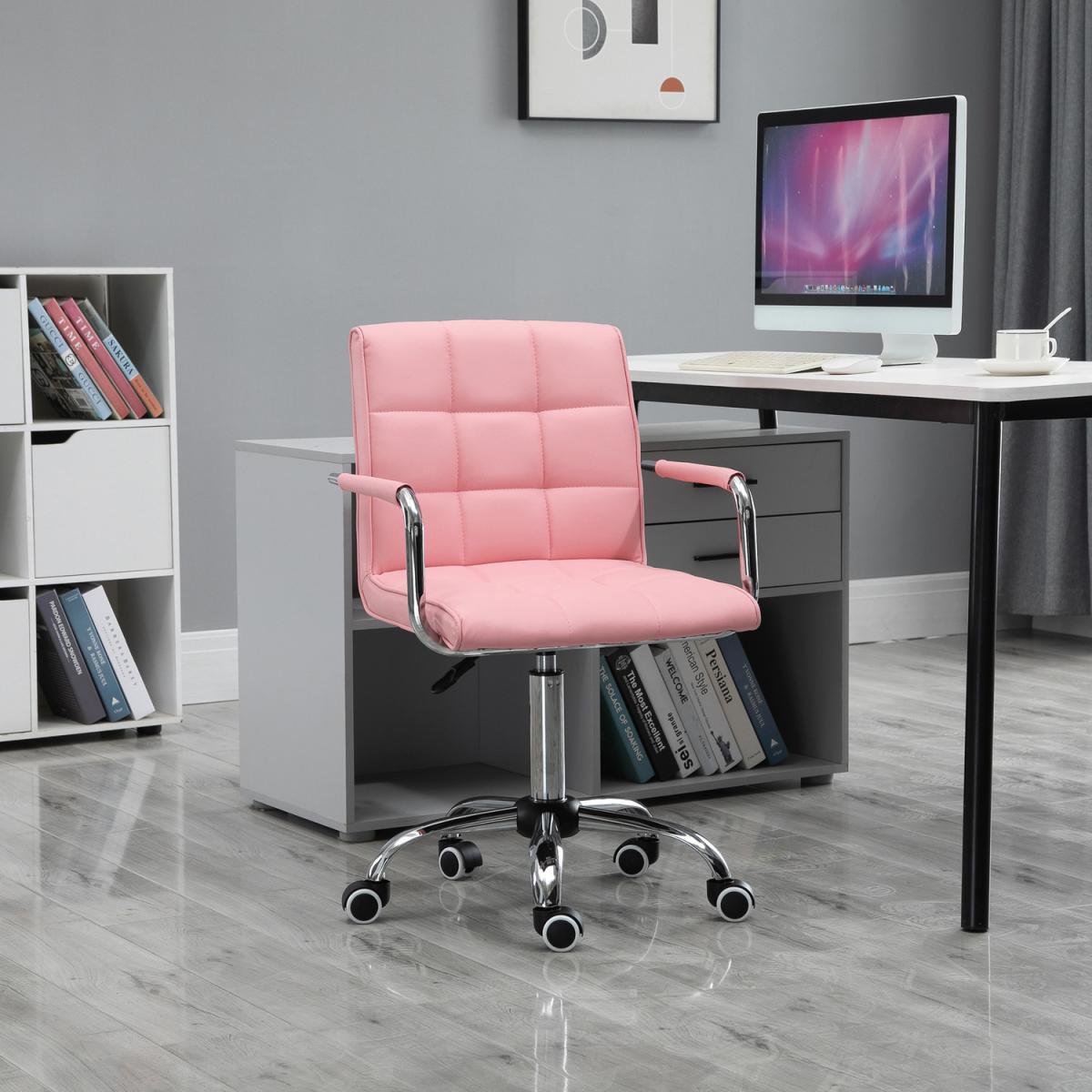 Let the effortless combination of style and comfort lead the way in your home or office - choose this chair from Vinsetto. Square in shape, with grid-effect padding, the seat is unique, with plenty of room and padding for you to sit comfortably. The height can be adjusted to a working level best for you, helping to prevent unnecessary stress and strain on the body. A heavy-duty base for solid support, it comes with five wheels and is finished with fixed armrests for extra support.