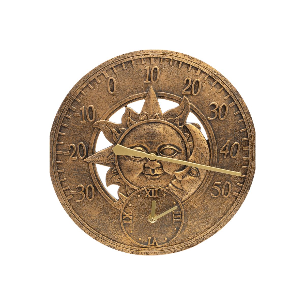 Vintage 12" Sun and Moon Outdoor Wall Clock and Thermometer - Copper