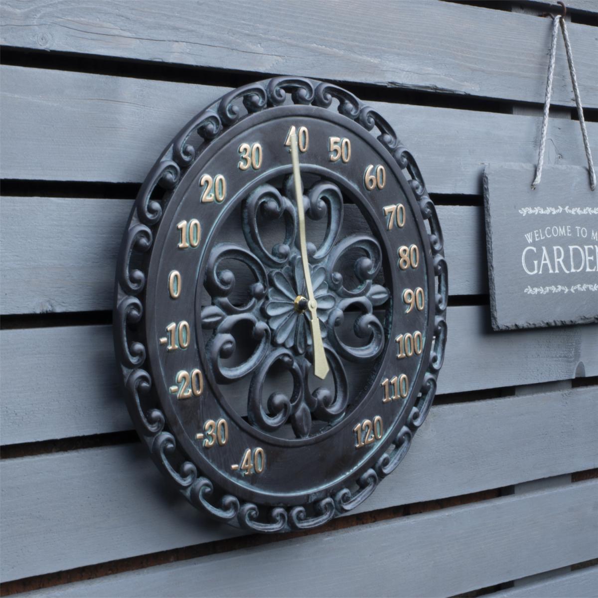 This fabulous decorative outdoor/indoor wall thermometer would make a welcome addition to any garden thanks to its charming open-faced design. The thermometer is hand-painted and made from polyresin making it long-lasting and suitable for outdoor use. It is supplied with a key slot making it extremely quick and easy to mount on outdoor walls, fences, summer houses, conservatories and sheds. Temperature is measured in degrees C from -40 to 120. The thermometer requires a 1x AA battery (not supplied).