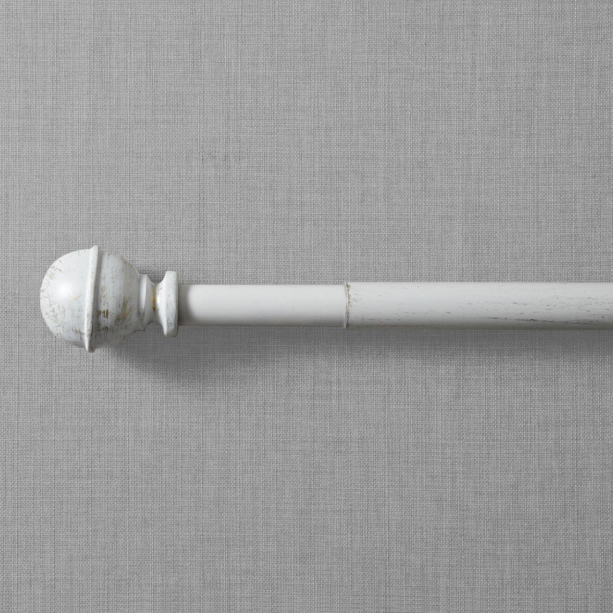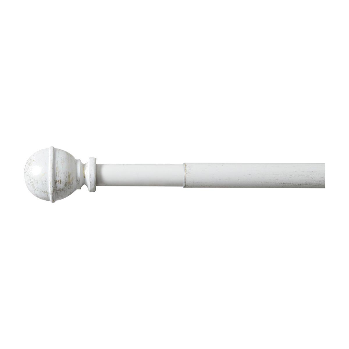 Featuring a worn vintage finish and classic ball finials made from ceramic, this extendable 25/28mm white curtain pole can be easily adjusted, and comes complete with curtain rings and fittings. The quantity of rings supplied is based on the industry standard of 1 ring per every 10cm. Please note: the pole length stated does not include the finials. Please allow up to an additional 20cm to the pole length to accommodate the finials. Disclaimer:. This pole can be cut to size and the finials can be removed.