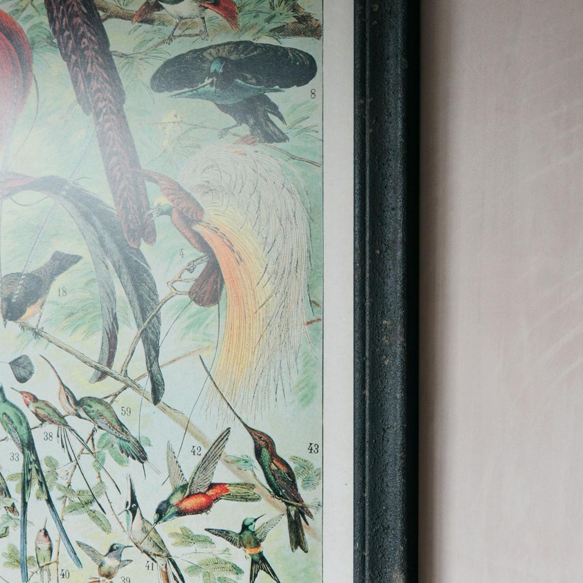I love how this vintage birds print adds a touch of character and colour to a space without feeling overwhelming. It's versatile enough to suit a variety of interiors, from eclectic and bohemian to more traditional or even modern settings if paired thoughtfully. Practical styling tips include framing it with a sleek, simple border to let the artwork be the focal point, and pairing it with natural textures like wood or linen to complement the earthy tones in the print. It works well on a feature wall or above a sideboard, creating a charming visual anchor that brings a bit of nature inside.