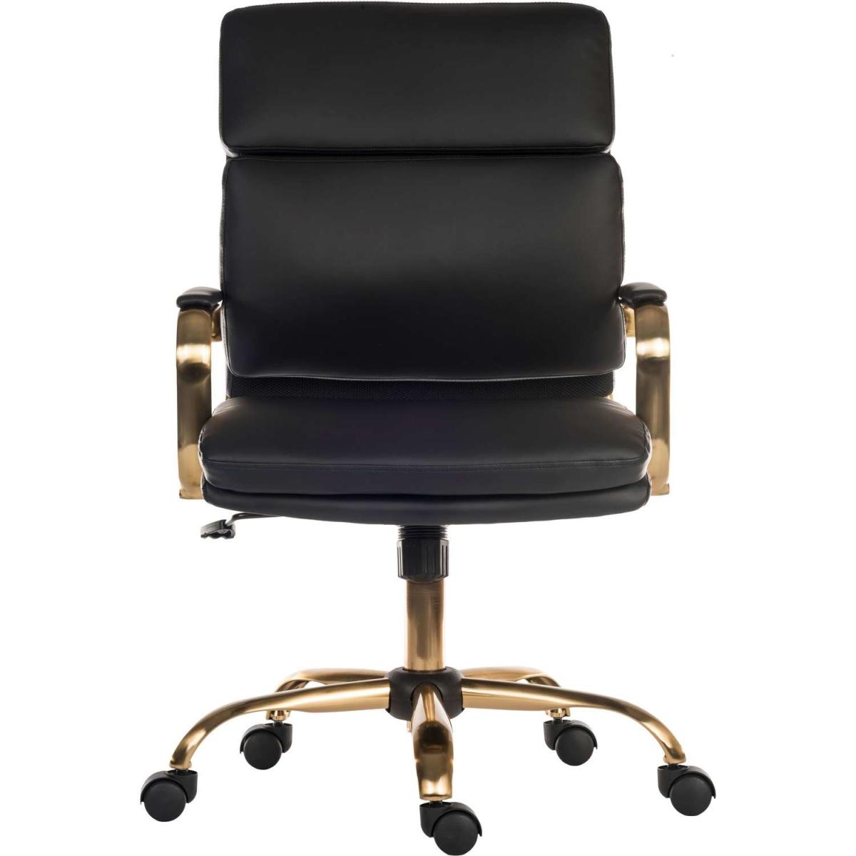The vintage black faux leather office chair is a versatile piece that adds a touch of sophistication to both classic and contemporary interiors. I love how it balances a sleek, professional look with a hint of retro charm, making it an excellent choice for home offices or studies. It works particularly well in spaces with metallic accents or dark wood furniture, where its gold detailing and black finish can truly stand out. For styling tips, pair it with a minimalist desk and a structured light shade or add colourful accessories around your workspace to create a balanced aesthetic. Its timeless design and neutral colour make it easy to integrate into various interior styles, ensuring an effortless yet polished work environment.