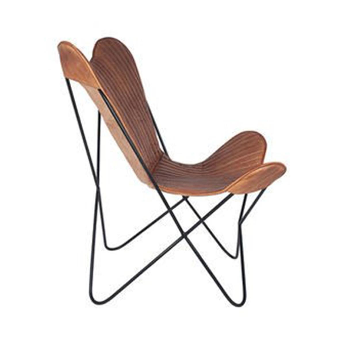 I love this butterfly chair because of its vintage appeal and contrasting materials, which lend a relaxed yet sophisticated vibe. It works particularly well in eclectic or industrial interiors, where the leather and iron create a nice mixture of textures. For styling, consider pairing it with neutral or warm-toned cushions to soften the look or layering it with other vintage pieces for a curated feel. Its compact size makes it ideal as an accent piece in living rooms, bedrooms, or even hallways, where it can serve as both a statement and a functional seat. Practical tips include placing it near a side table or lamp to create a cosy reading nook, ensuring the iron frame is balanced with softer textiles for comfort.