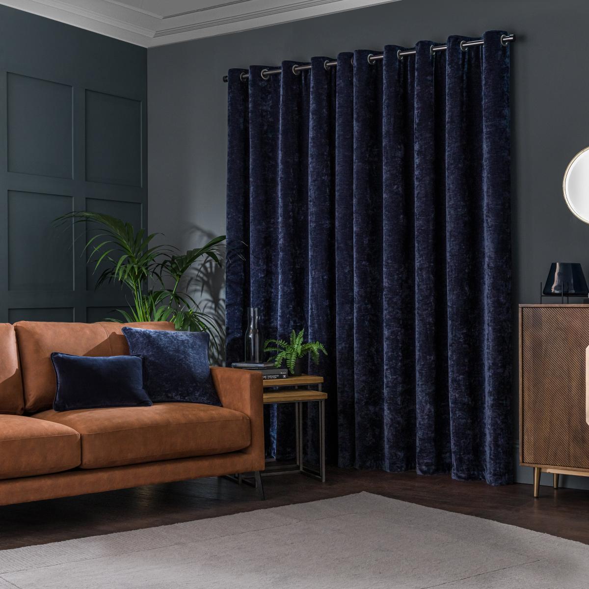 This sumptuously soft pair of navy blue Chenille curtains are woven from luxurious chenille yarns resulting in an opulent fabric resembling that of traditional velvets in texture and feel. The unique fleece lining will help insulate your home throughout all seasons by blocking external heat in summer and preventing cool draughts and retaining warmth in winter. Available in a selection of sizes and colours to suit your style, match with the coordinating cushion for a truly sumptuous look. This collection is verified by OEKO-TEX® and independently tested for harmful substances as well as manufactured using sustainable processes under socially responsible working conditions.