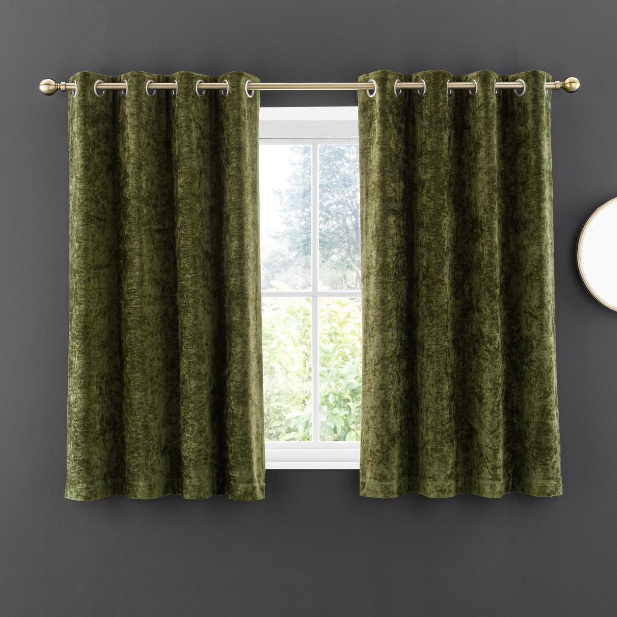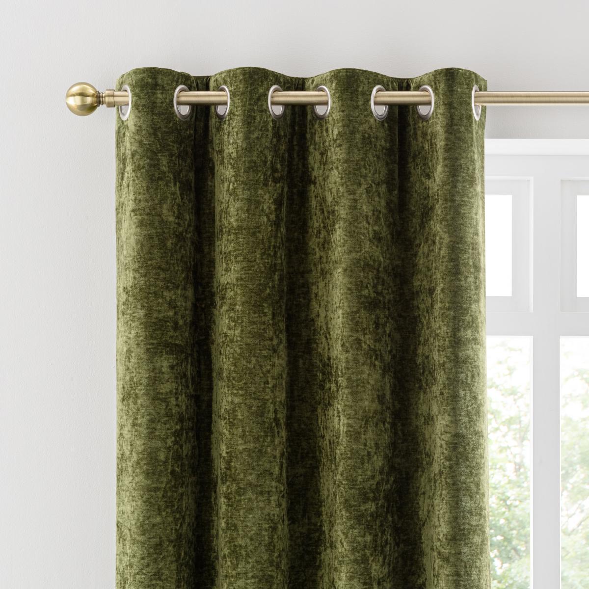 Vintage Chenille Olive Green Thermal Fleece Lined Eyelet Curtain Olive (Green)