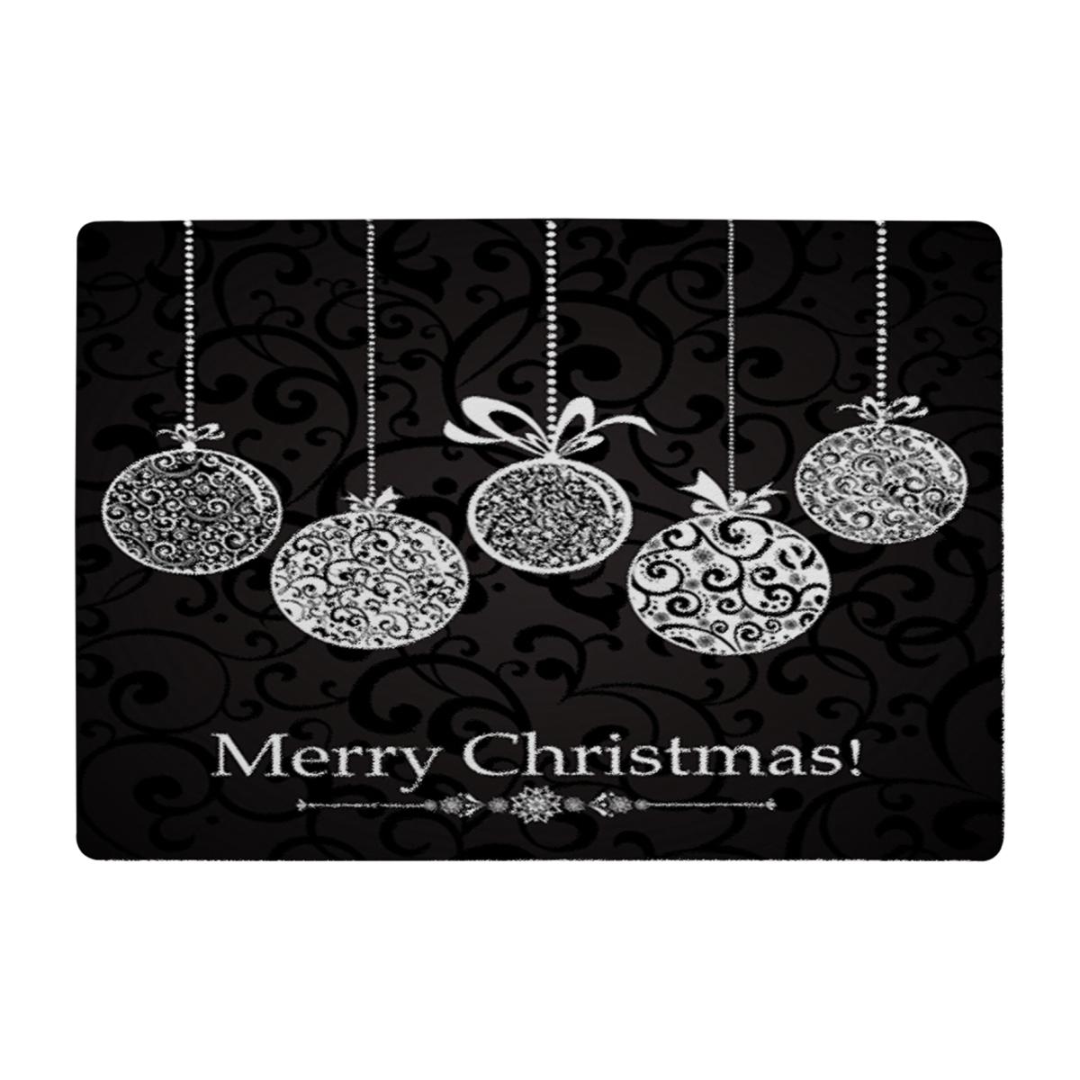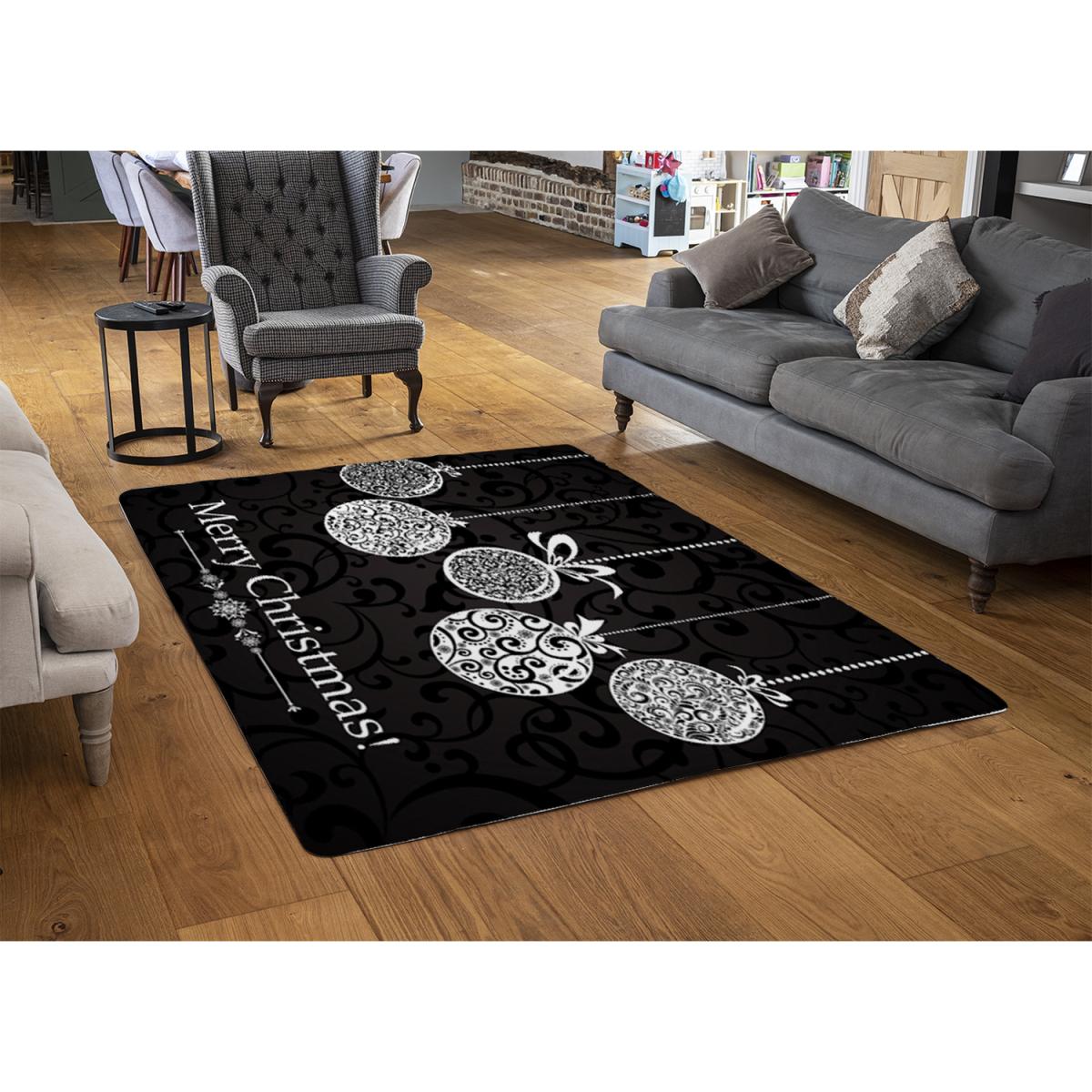 This vintage Christmas balls rug is a versatile piece that works well in both traditional and contemporary interiors, especially during the festive season. Its black base with festive ornament motifs offers a modern twist on holiday decor, making it ideal for adding a touch of elegance to living rooms or entryways. To style it effectively, consider pairing it with metallic or jewel-toned cushions and accessories for a chic, festive look. It's also practical for creating a focal point in more minimalist spaces, providing visual interest without overwhelming the surroundings. Keep it seasonally themed by layering with soft throws and holiday decor for a cosy, inviting atmosphere.