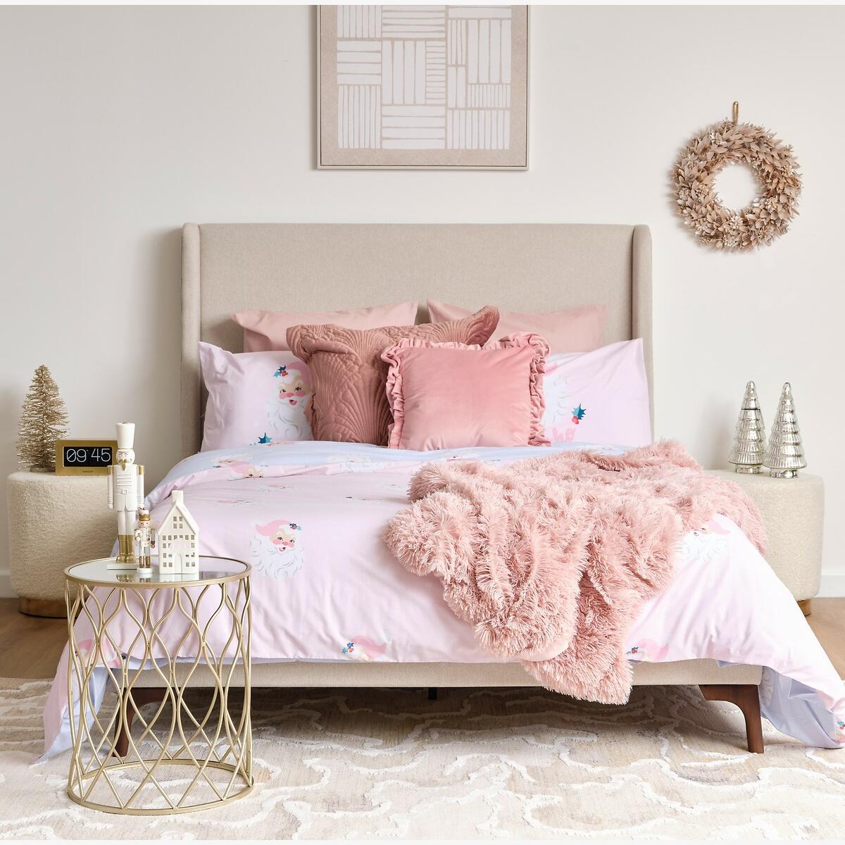 Bring the charm of retro festive styling to your home with this charming vintage Santa design, featuring a candy stripe backdrop for a super sweet touch. Switch between soft pink and light blue side to match your mood seasonal style. Created from easy-care recycled polyester and soft responsibly sourced cotton, perfect for everyday use during the holiday season. Catherine Lansfield is renowned for style and quality - designed and developed in Great Britain. Made to quality and human-ecological safety standards, in accordance with MADE IN GREEN by OEKO-TEX®.52% POLYESTER 48% COTTONSizes Available:135x200 cm (Single)200x200 cm (Double)220x230 cm (King)This product will be dispatched by one of our trusted suppliers. You’ll be contacted by their selected courier about your delivery.