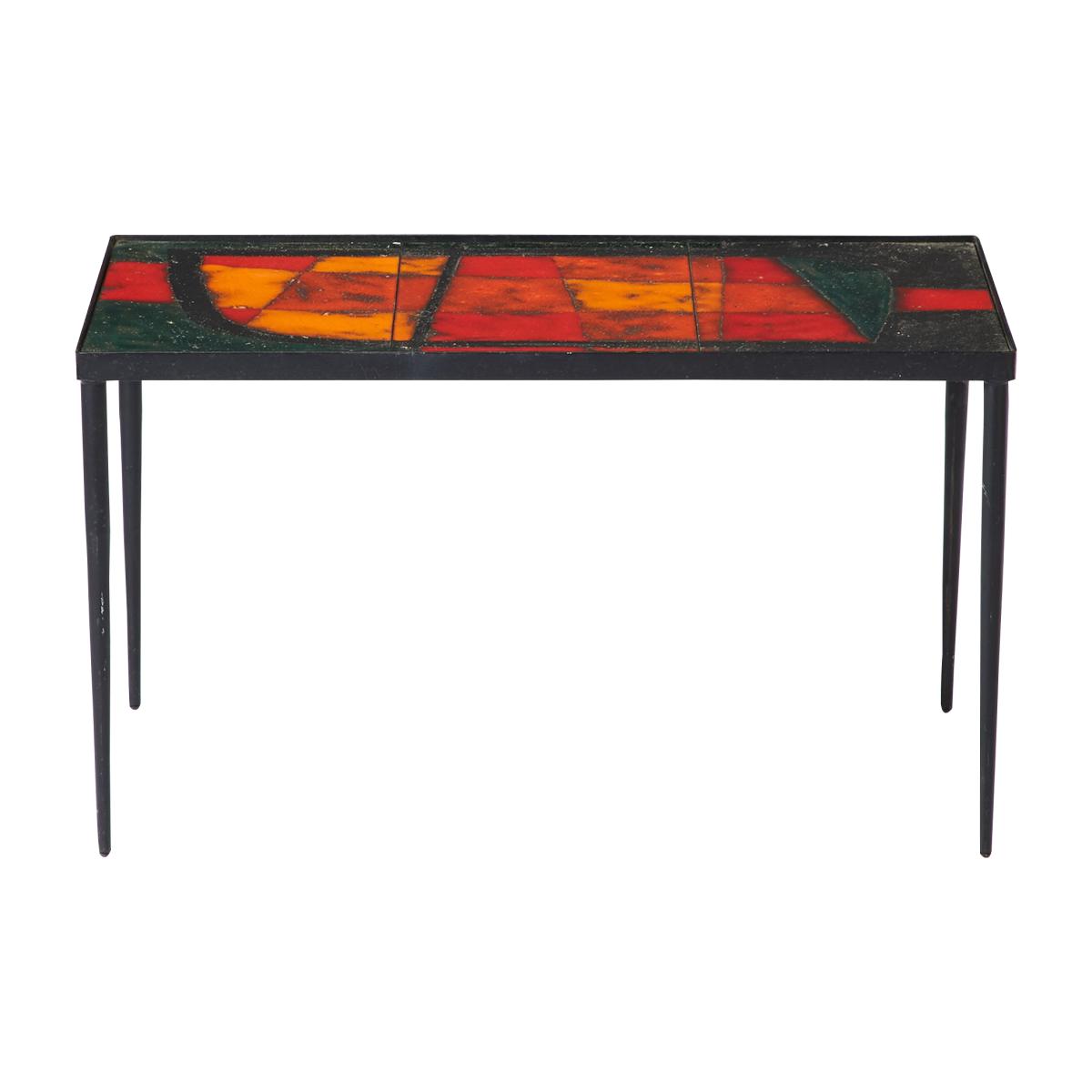 Part of the Vintage at The Conran Shop collection, this mid-century Lava Tile Coffee Table by the Cloutier Brothers is truly a one-of-a-kind piece. Beautifully crafted from a black metal base, the rectangular table features a red and amber tiled ceramic surface in an abstract design, lending a unique and striking edge to the piece. Robert and Jean Cloutier were 1950s French ceramicists known for producing functional and aesthetic objects for the home. Their table is part of The Conran Shop's Vintage edit, offering designs from the furthest-flung antique fairs and dealers to add a sense of history and sustainability to your interior. Condition: Good vintage condition. Please note: This is an inimitable vintage design; therefore, it may show signs of wear proportional with age. Our photography is unretouched and accurately showcases each unique intricacy and characterful imperfection. This piece is sold as seen.