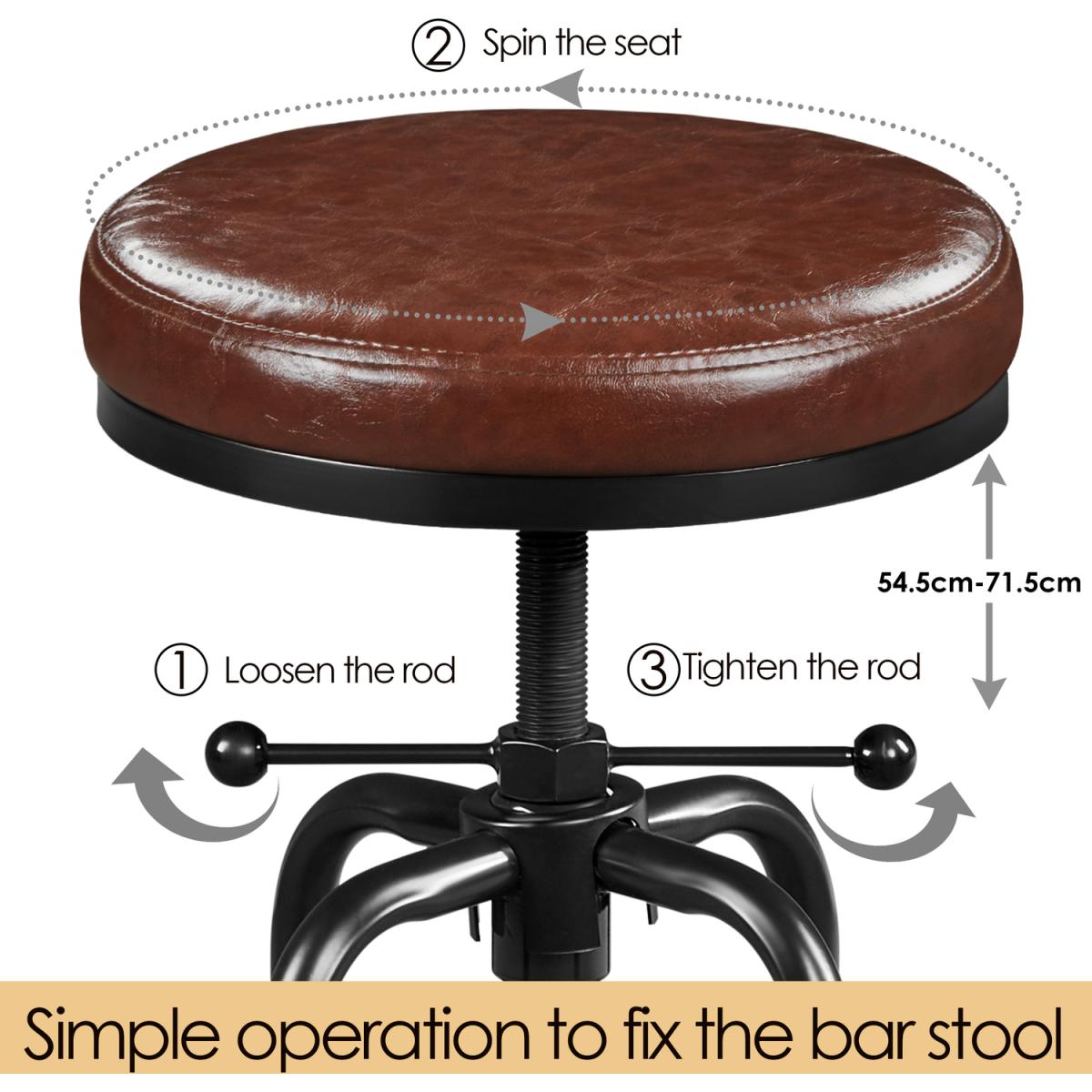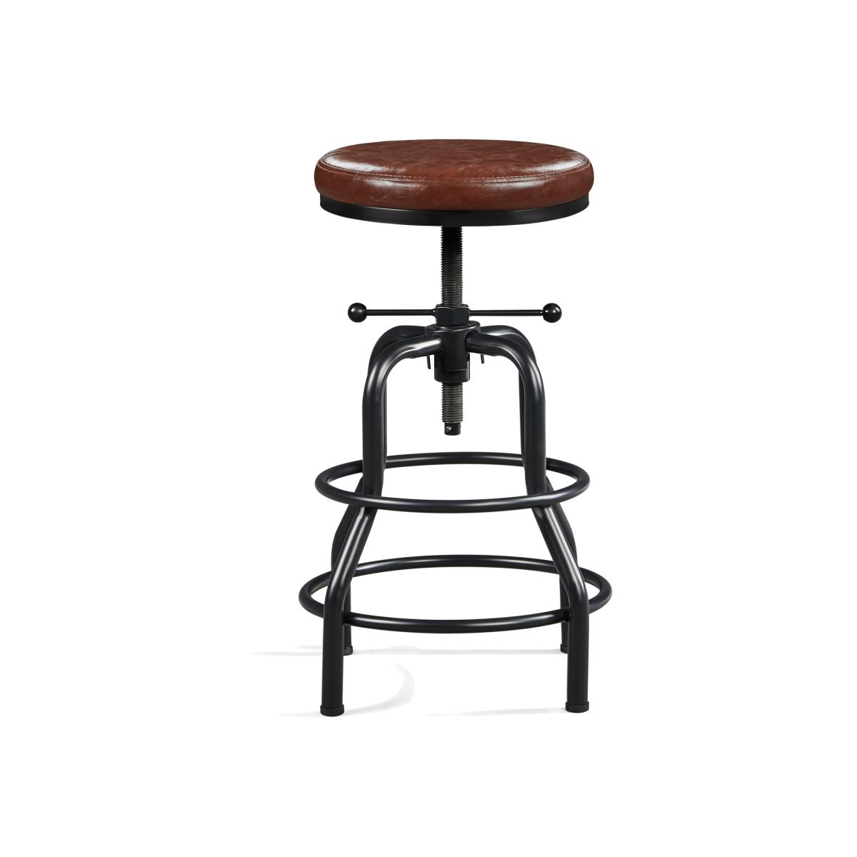 Need a rustic industrial bar stool for your kitchen island or dining room? This bar stool may be ideal for you. Crafted with water-proof faux leather and powder-coated metal, the stool is strong and long-lasting for kitchens, dining rooms, home bars, restaurants, etc. It weighs 6.1kg but can hold up to 136kg. The stool with an adjustable height ranging from 54.5-71.5cm is perfect for a 32- 40 countertop, serving you well from breakfast to midnight drinks. The double-ring footrest not only provides an extra degree for holding your legs but also enhances stability that helps secure the stool legs. With a modern farmhouse industrial style and unique appearance, our round bar stool can match your existing house furniture effortlessly.
