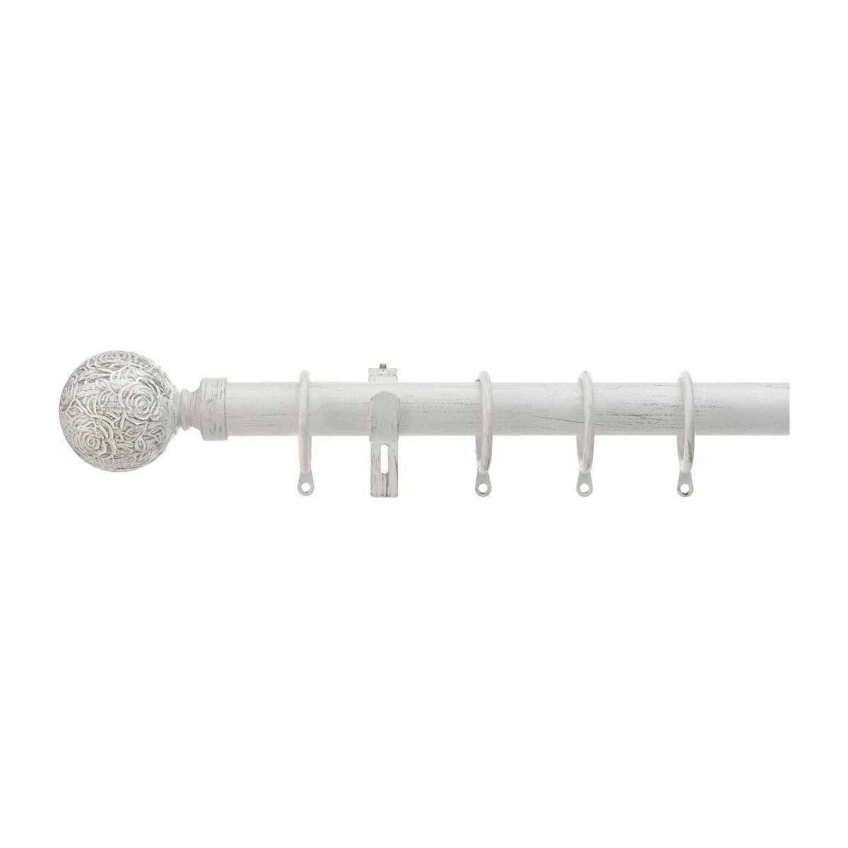 Available in a range of sizes, this fully extendable 25/28mm curtain pole comes complete with vintage style floral etched ball finials finished in distressed white, curtain rings and brackets. Crafted in the telescopic design, installation of the set is hassle free. Supplied with fixings and instructions. The quantity of rings supplied is based on the industry standard of 1 ring per every 10cm. Please note: the pole length stated does not include the finials. Please allow up to an additional 20cm to the pole length to accommodate the finials. Disclaimer:. This pole can be cut to size and the finials can be removed.