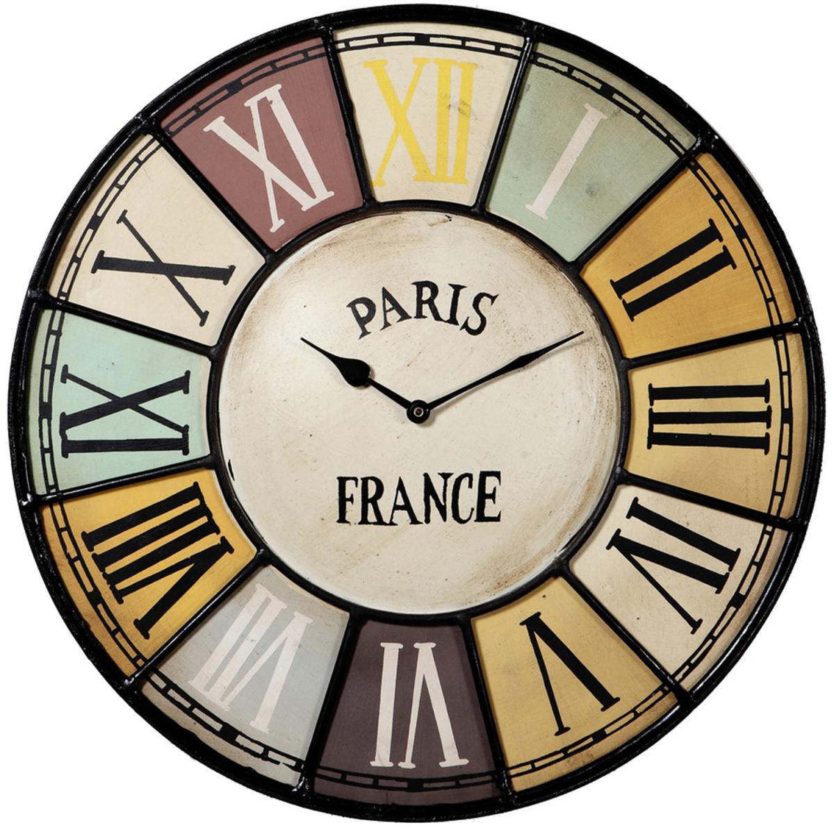 Vintage French Design Coloured Metal Wall Clock - Multi