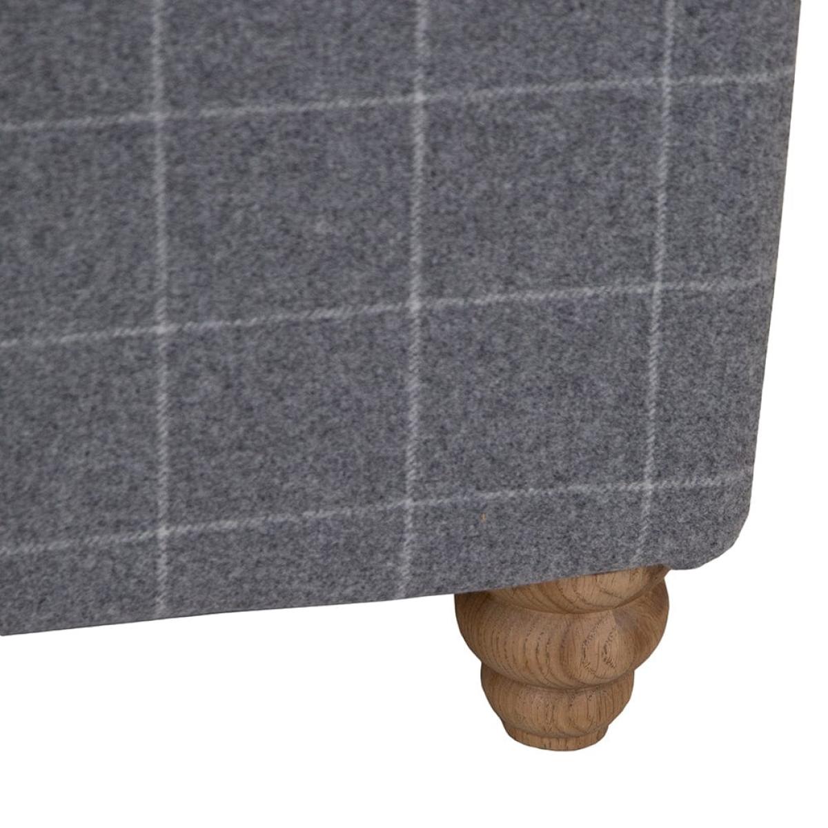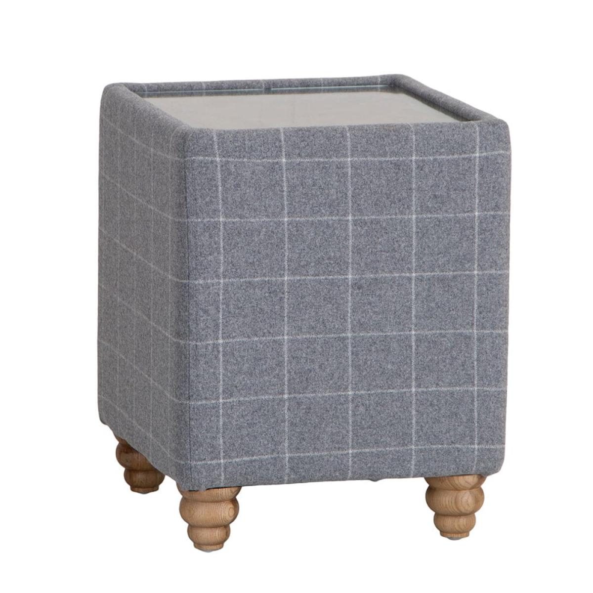 Vintage Grey Check End Table in Tweed with Glass Top