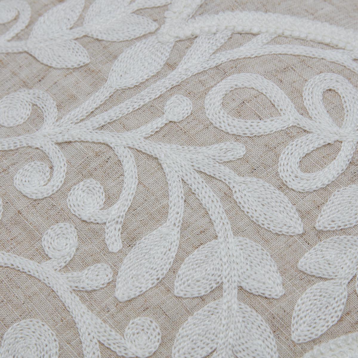 Designed with a secure zip fastening for ease of inserting filling, this square filled cushion has been made with a quality linen mix fabric for a luxurious soft surface. Finished in a natural colour, this cushion comes complete with embroidered detailing and it is machine washable for convenient cleaning.