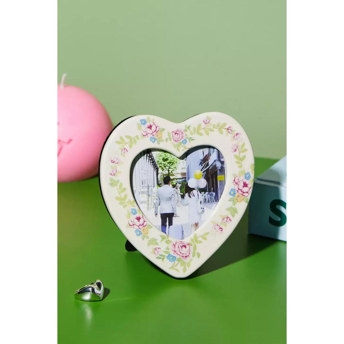 Fill your space with photos of your loved ones with this heart photo frame. Ceramic construction in a heart silhouette topped with painted roses. **Content + Care** \- 80% Stoneware, 10% Glass